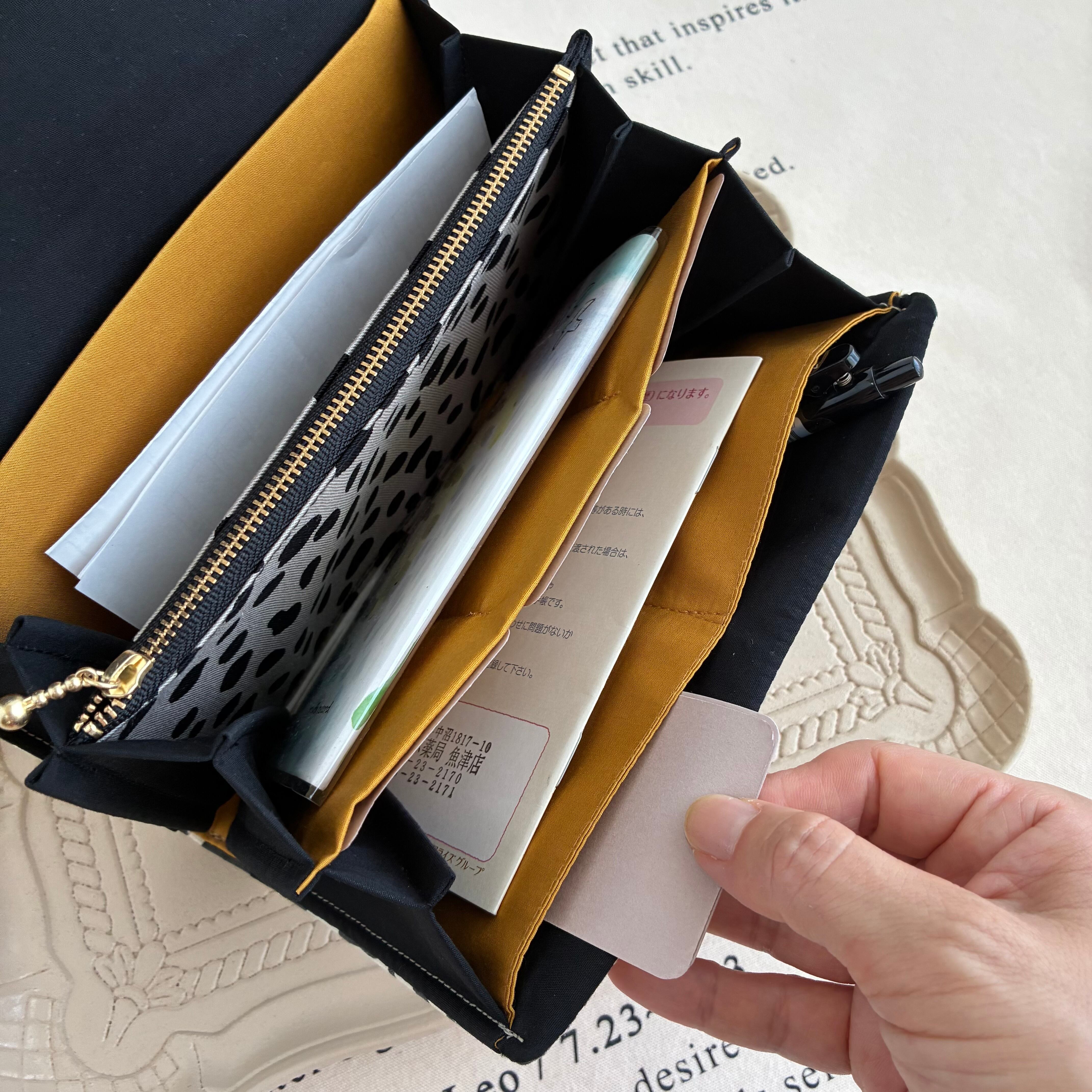 診察券やお薬手帳、領収書などがまるっと入ります。蛇腹タイプで使いやすいです。