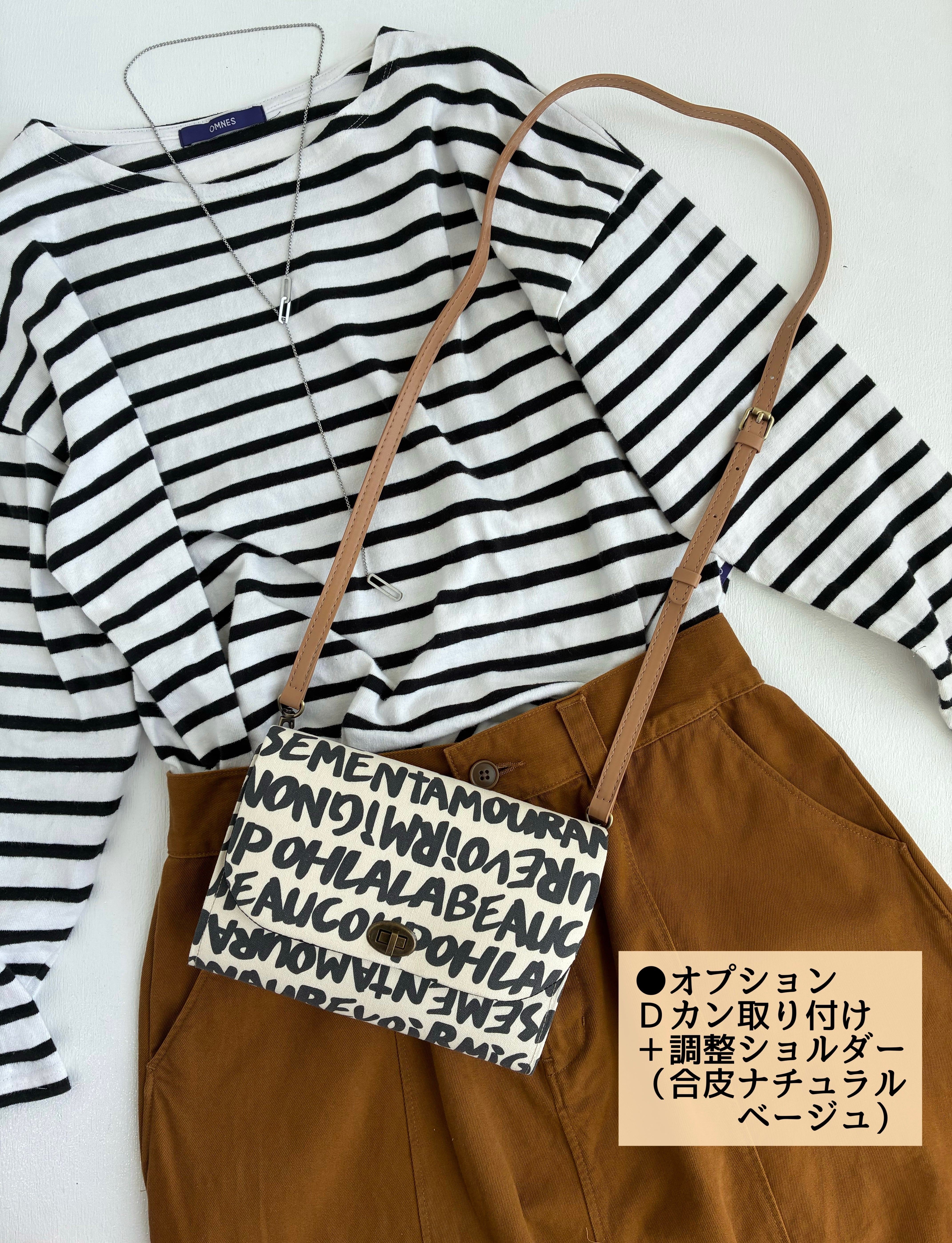 ご希望の際はオプションのショルダ一ヒモと一緒にお買い求めください。