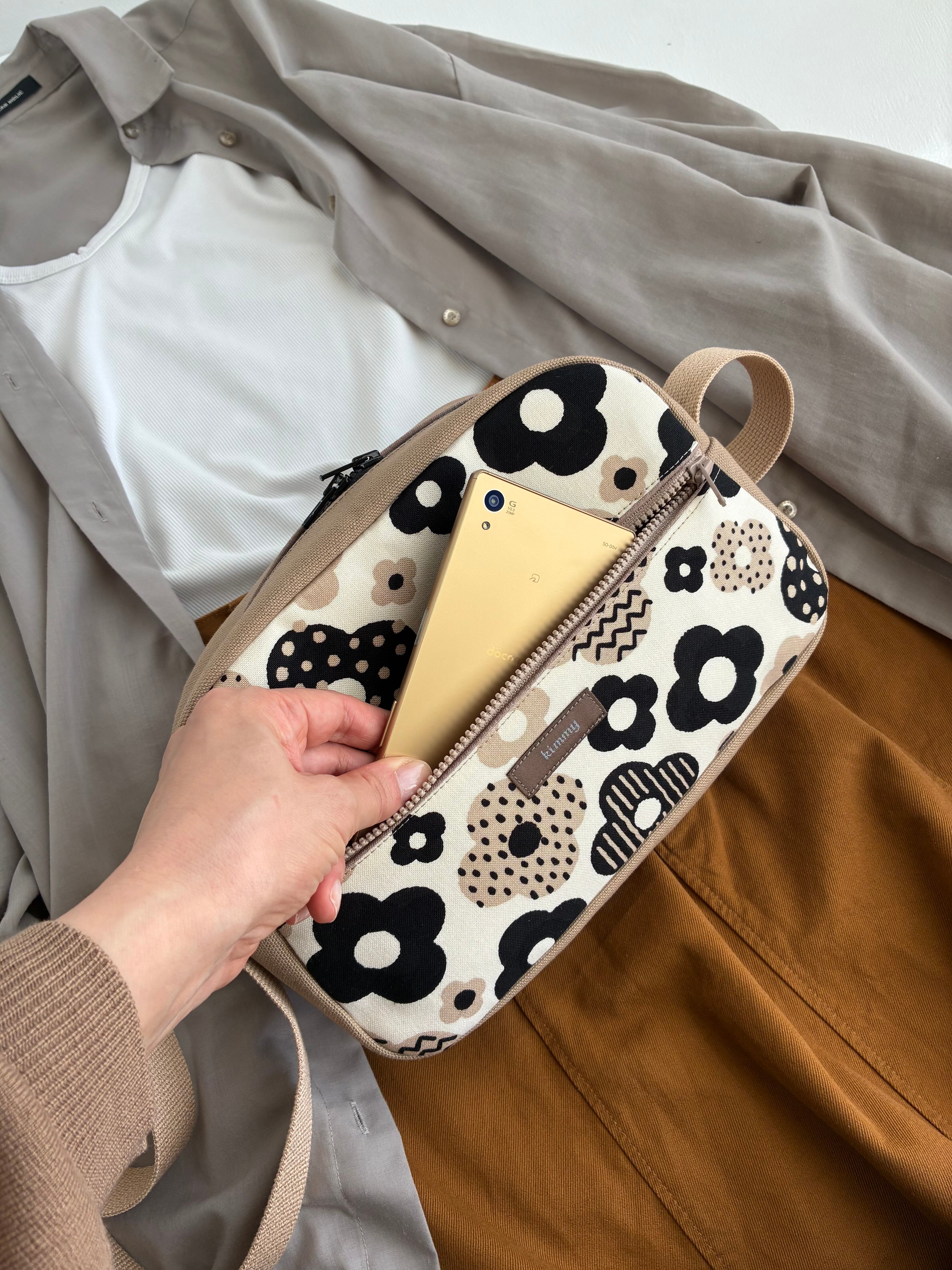 前ポケットには、スマホがさっと入るので出し入れできます。