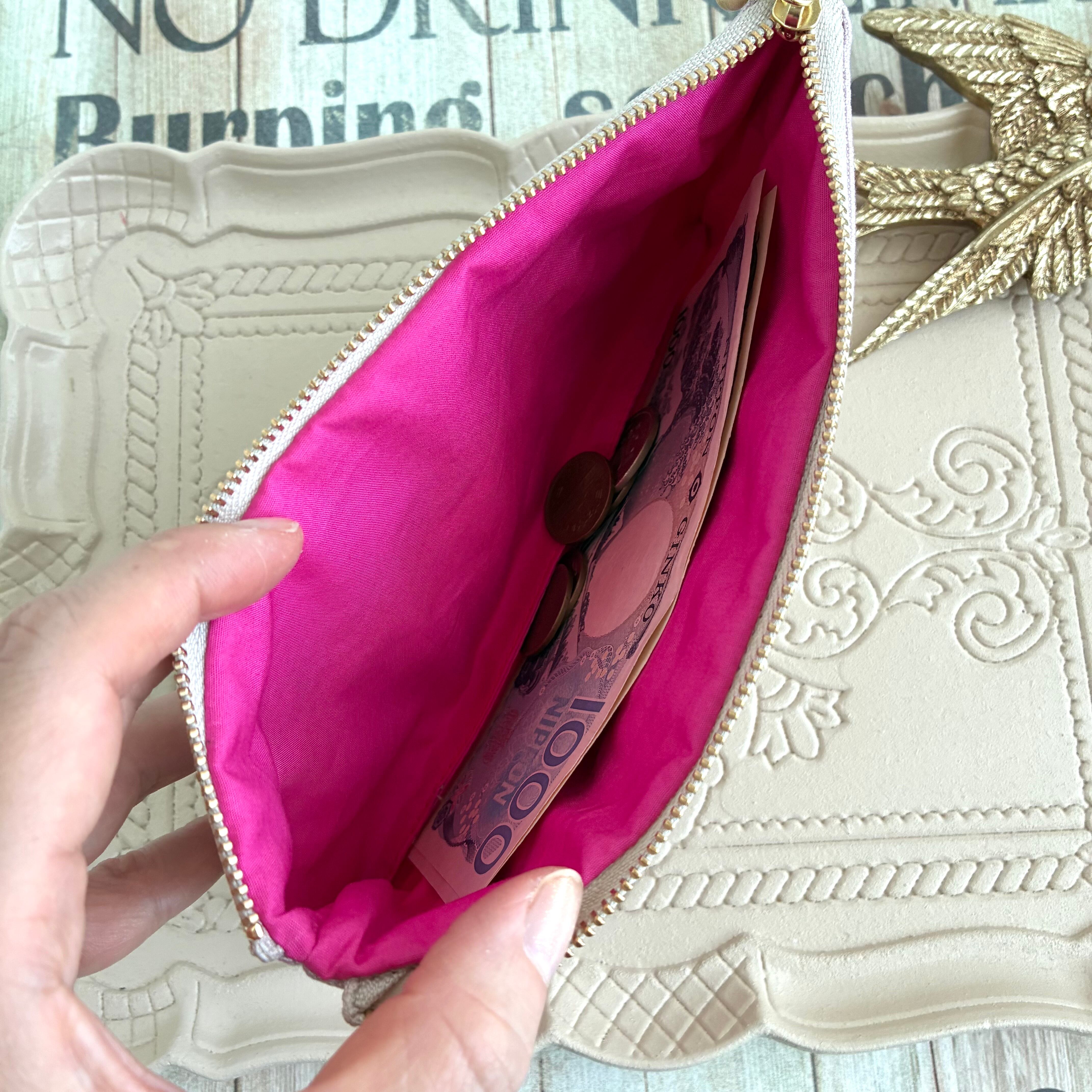 家計のやりくり長財布の補助的なポーチとして、自分のお小遣いや食費以外の現金を収納しておけます。
