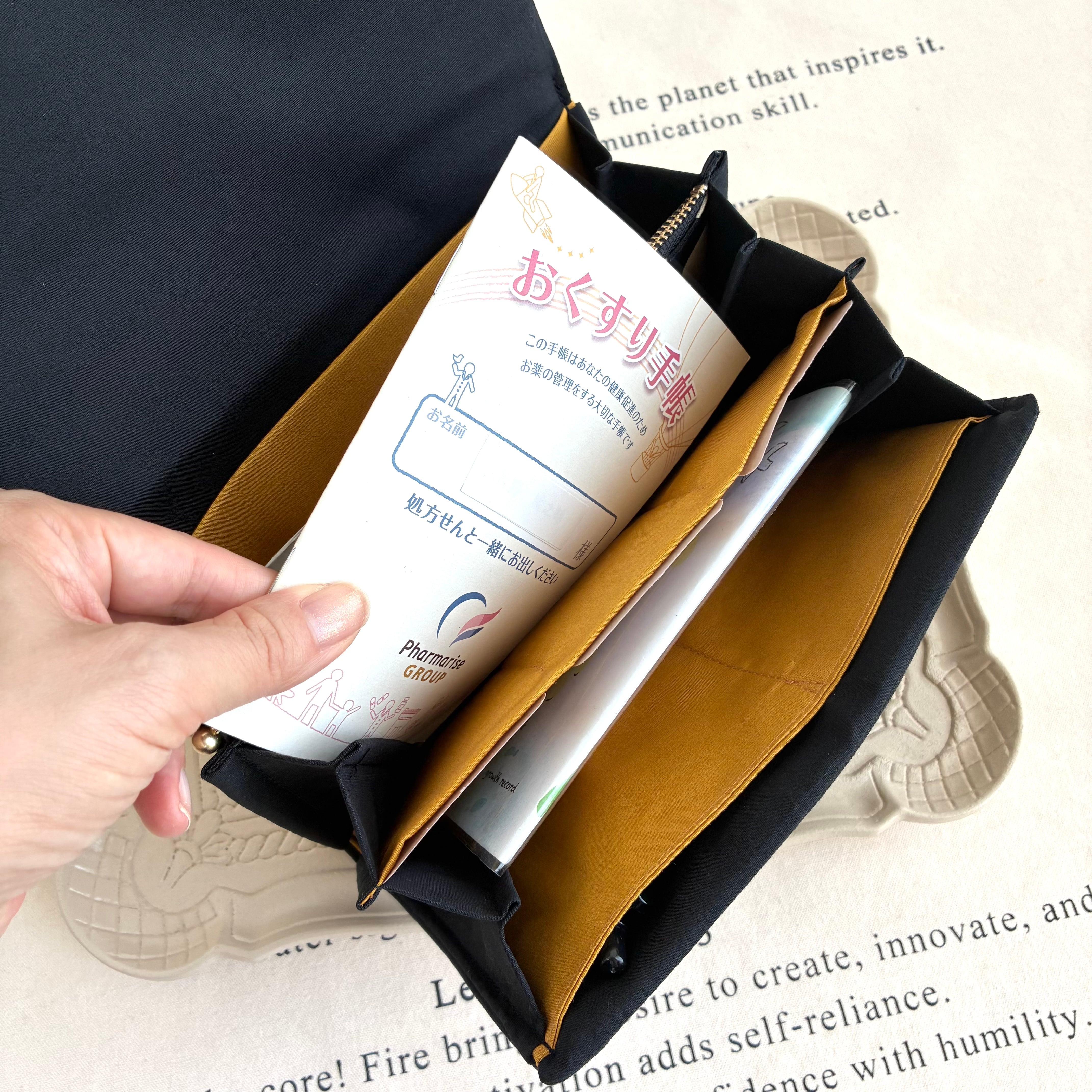診察券やお薬手帳、領収書などがまるっと入ります。蛇腹タイプで使いやすいです。