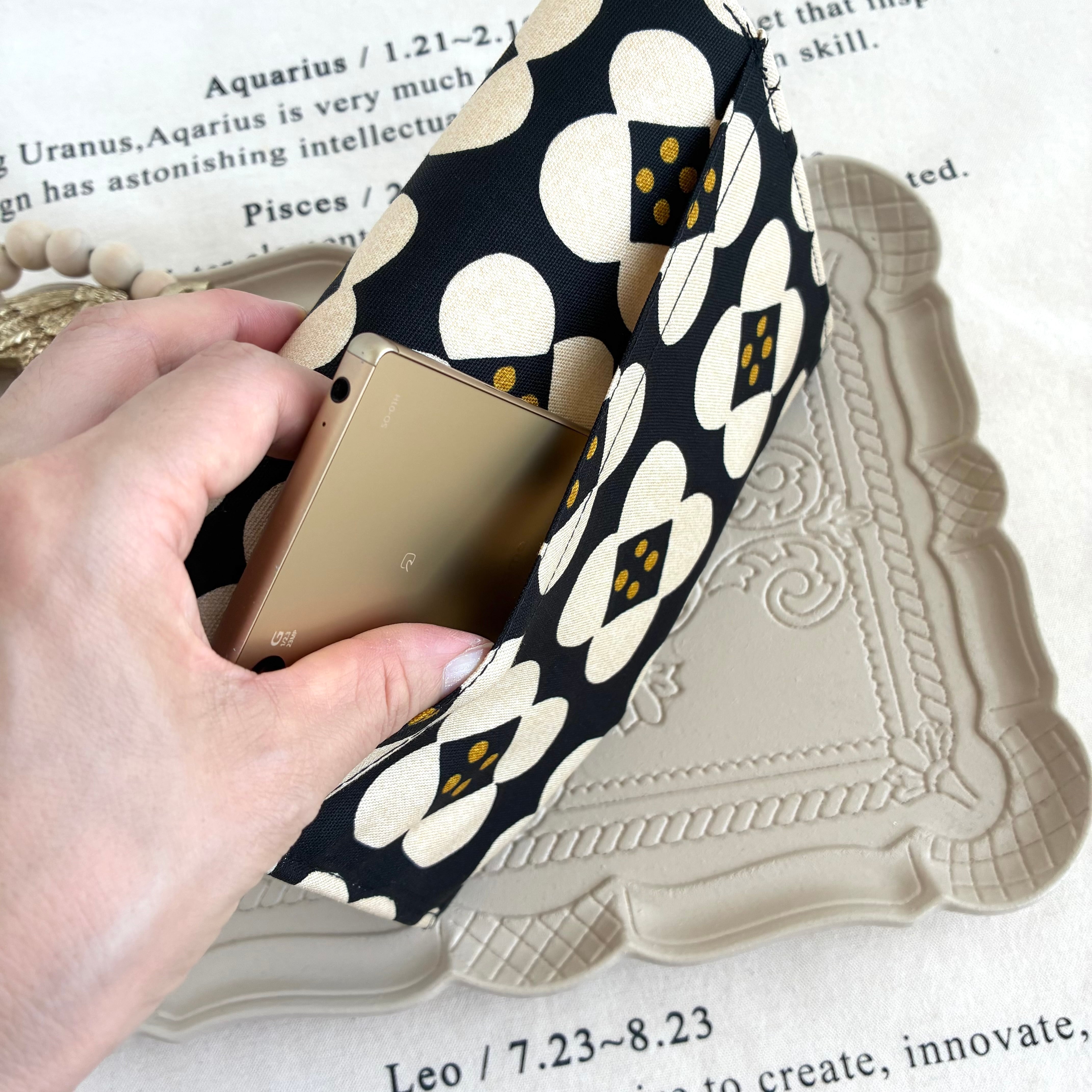背面ポケットにはマチはついていないので、スマホが入らない可能性もあります。その場合には、「病院いくのにひとまとめケース」の中に入れてください。