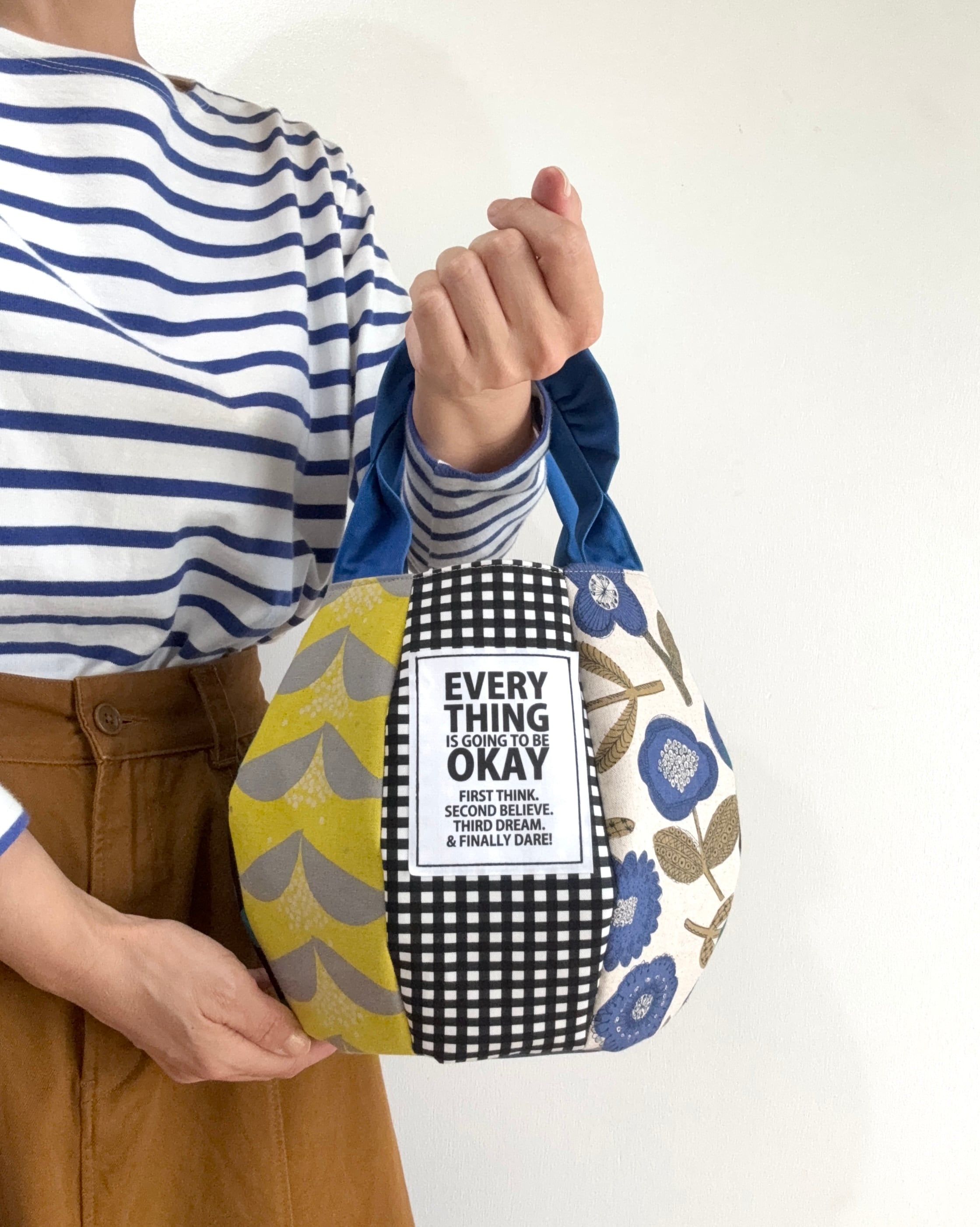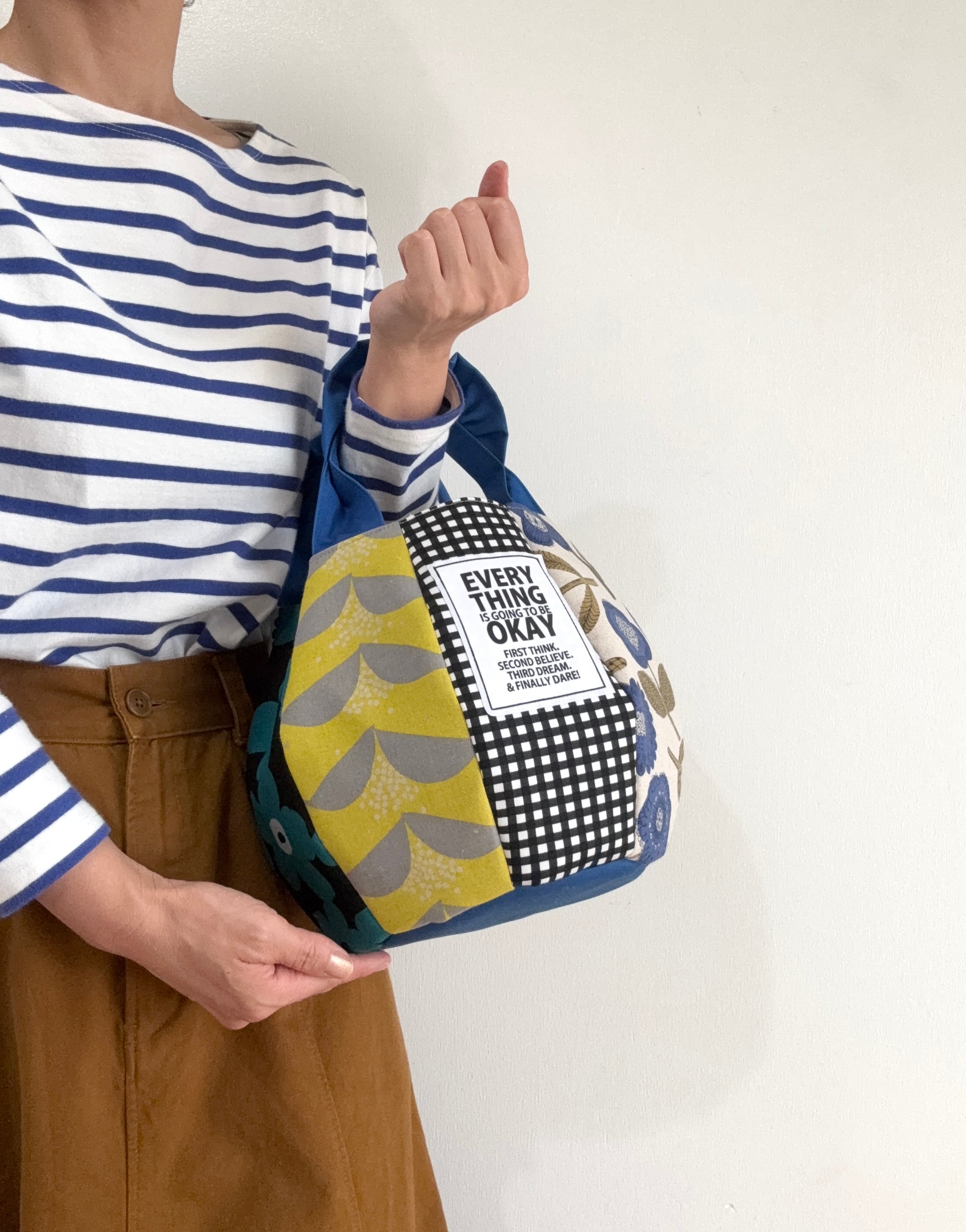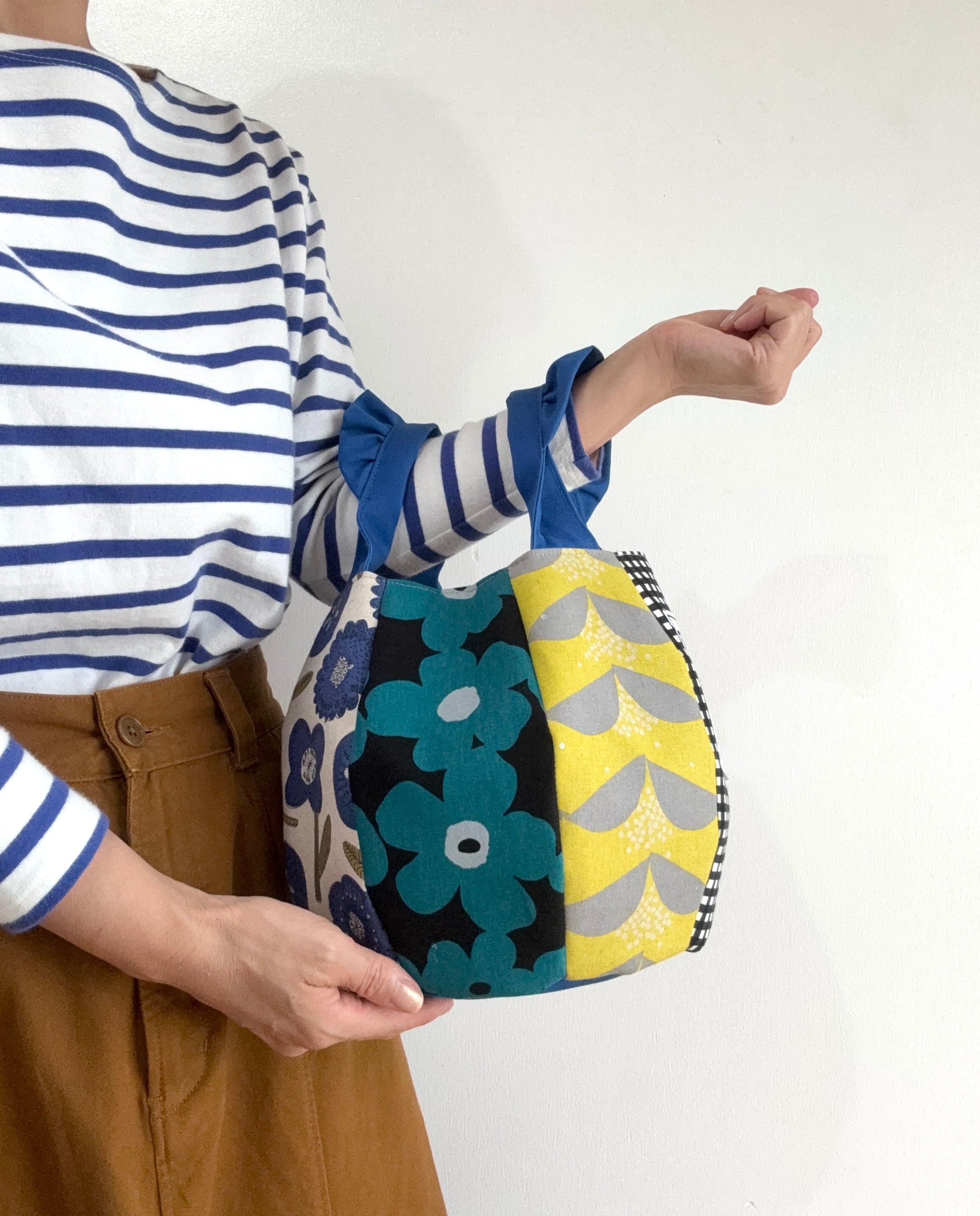 8枚の生地を組み合わせた、バルーンのようなバッグです。