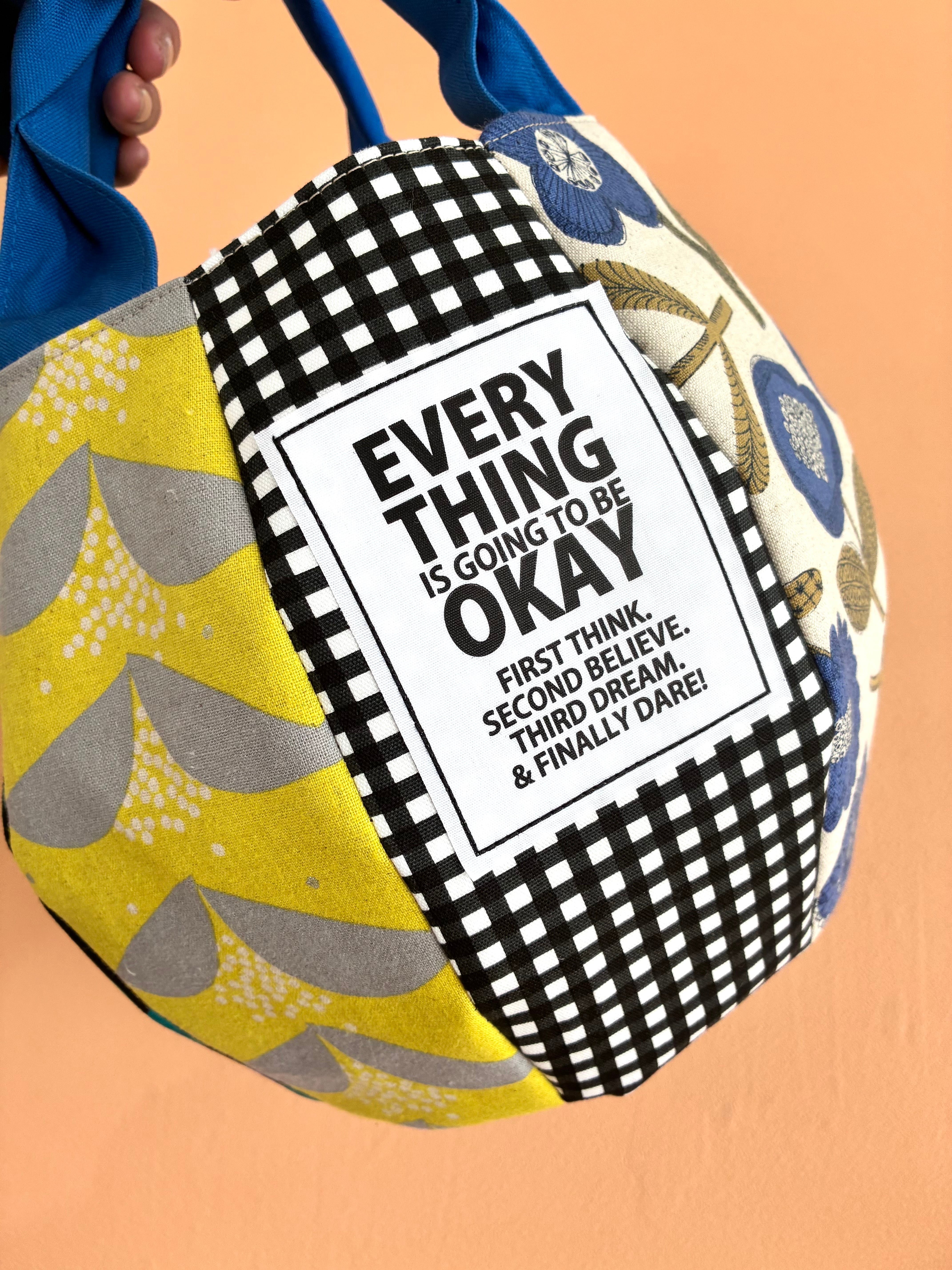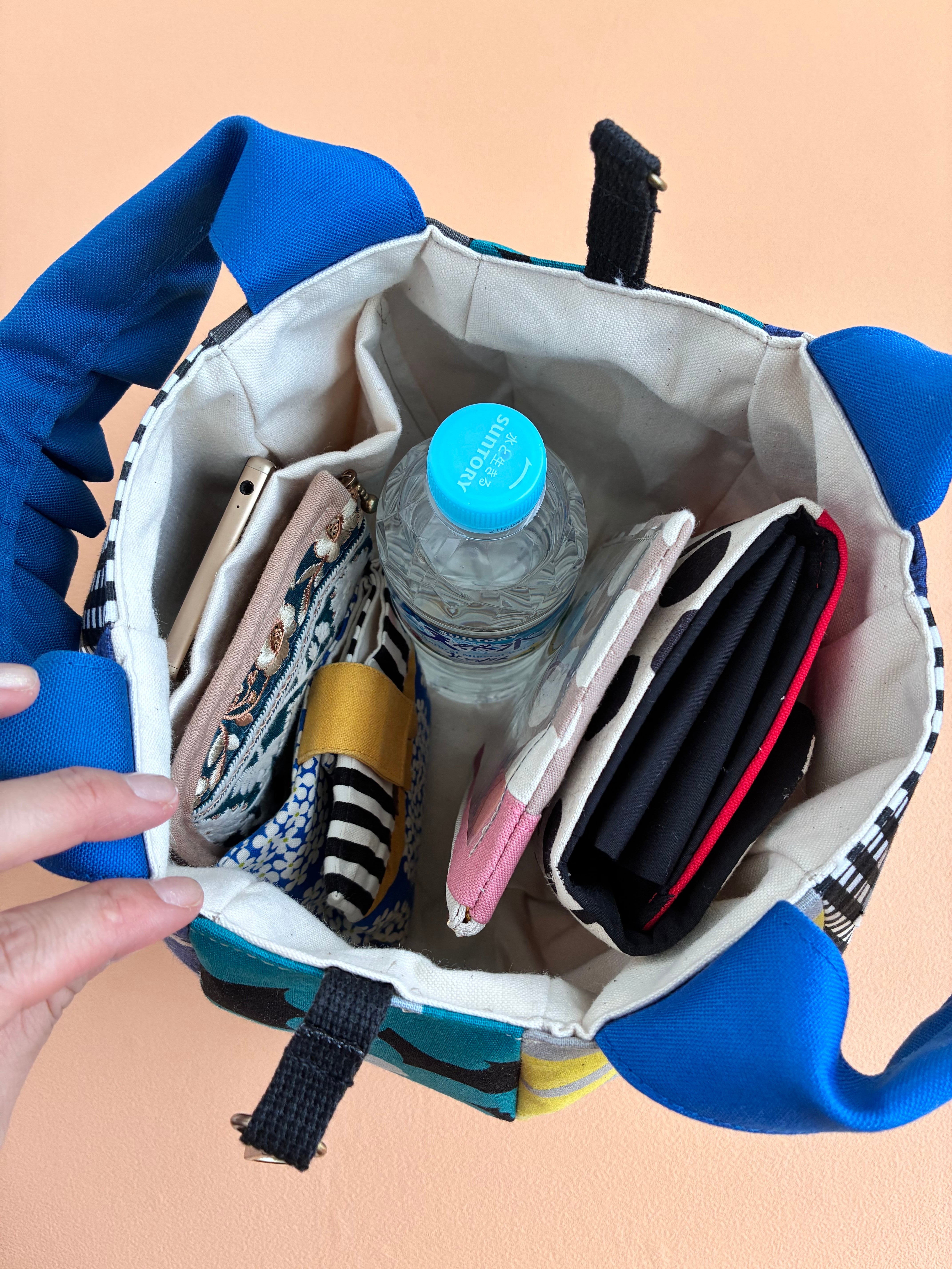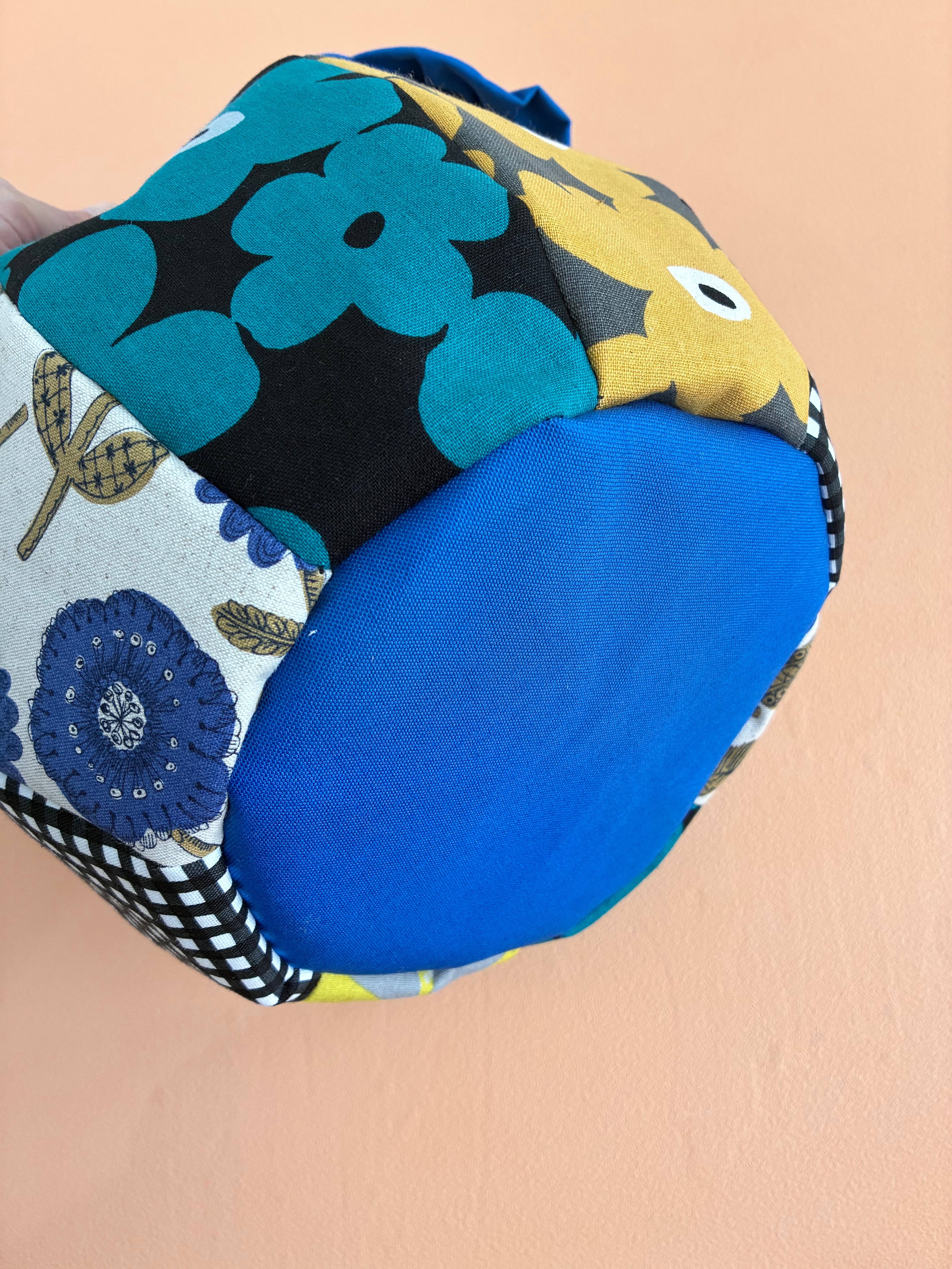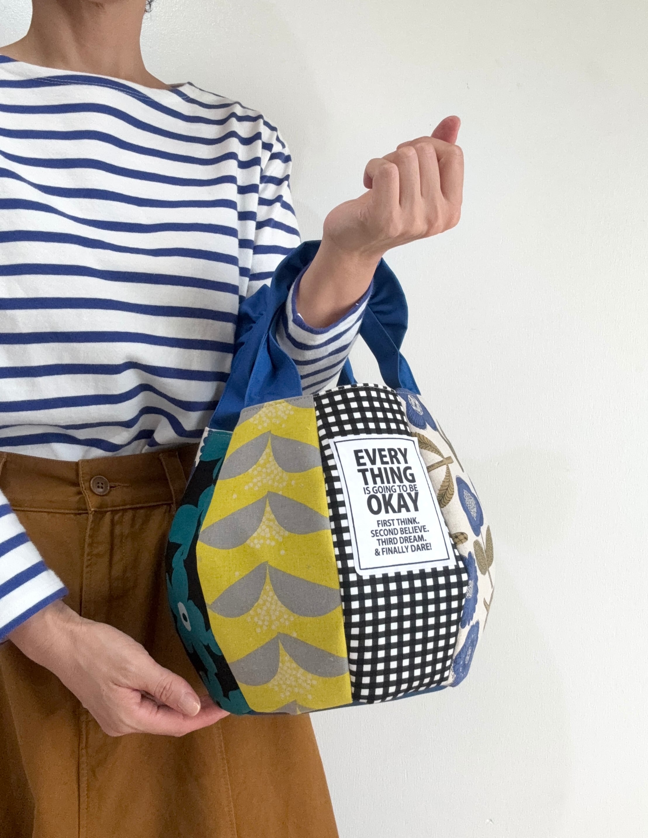 8枚の生地を組み合わせた、バルーンのようなバッグです。
