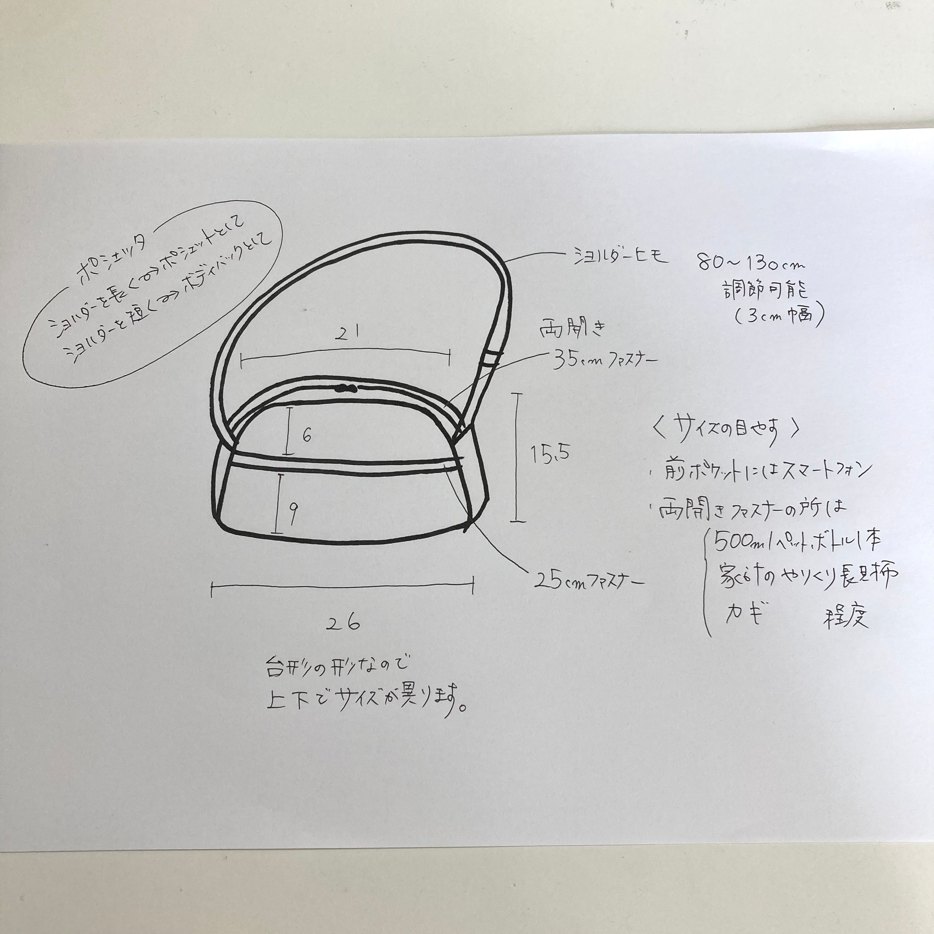 ショルダーヒモは長さは調整可能(130~80㎝)の3㎝幅です。