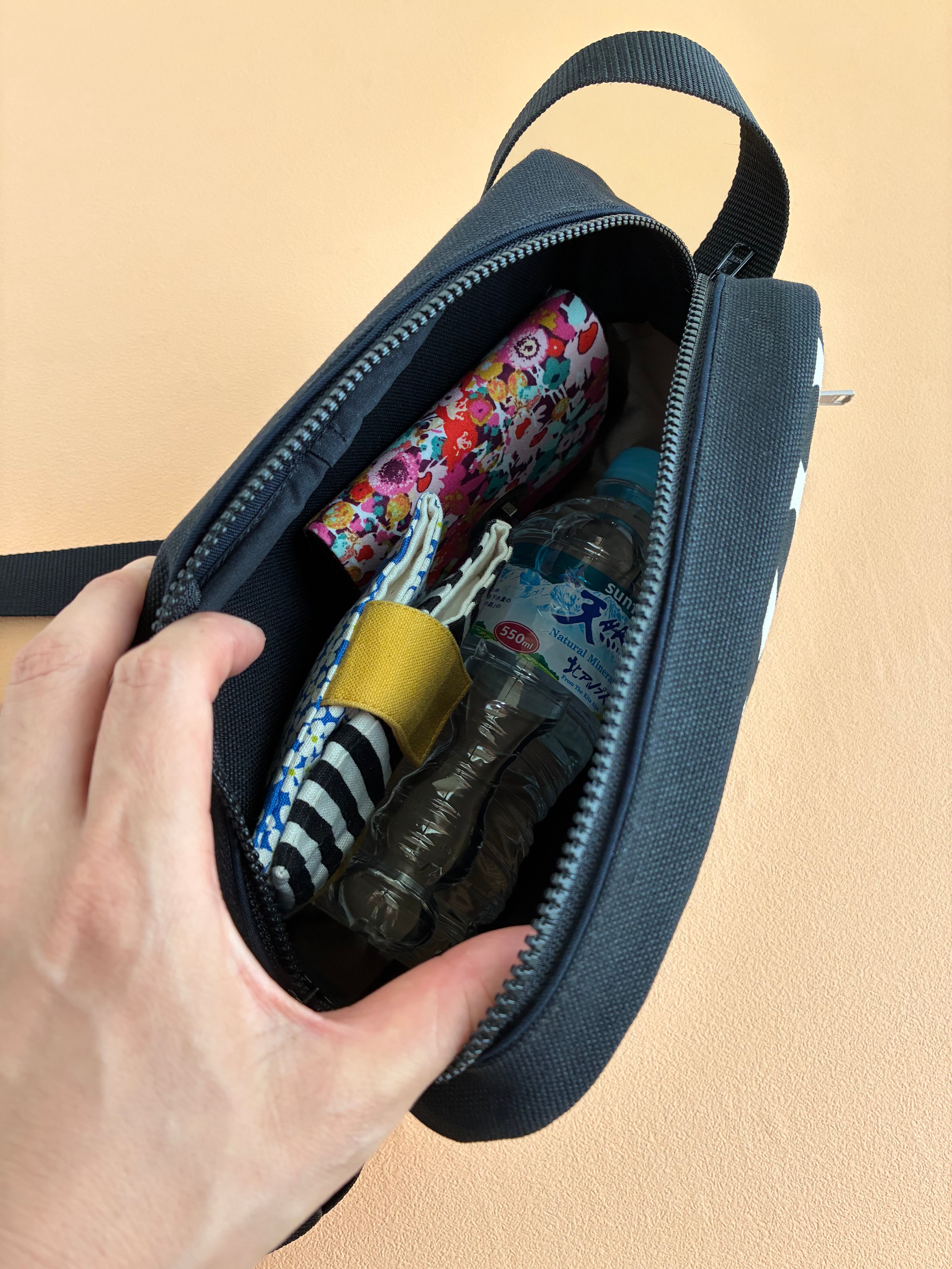 ティッシュやハンカチ、スマホ、鍵程度が入ります。