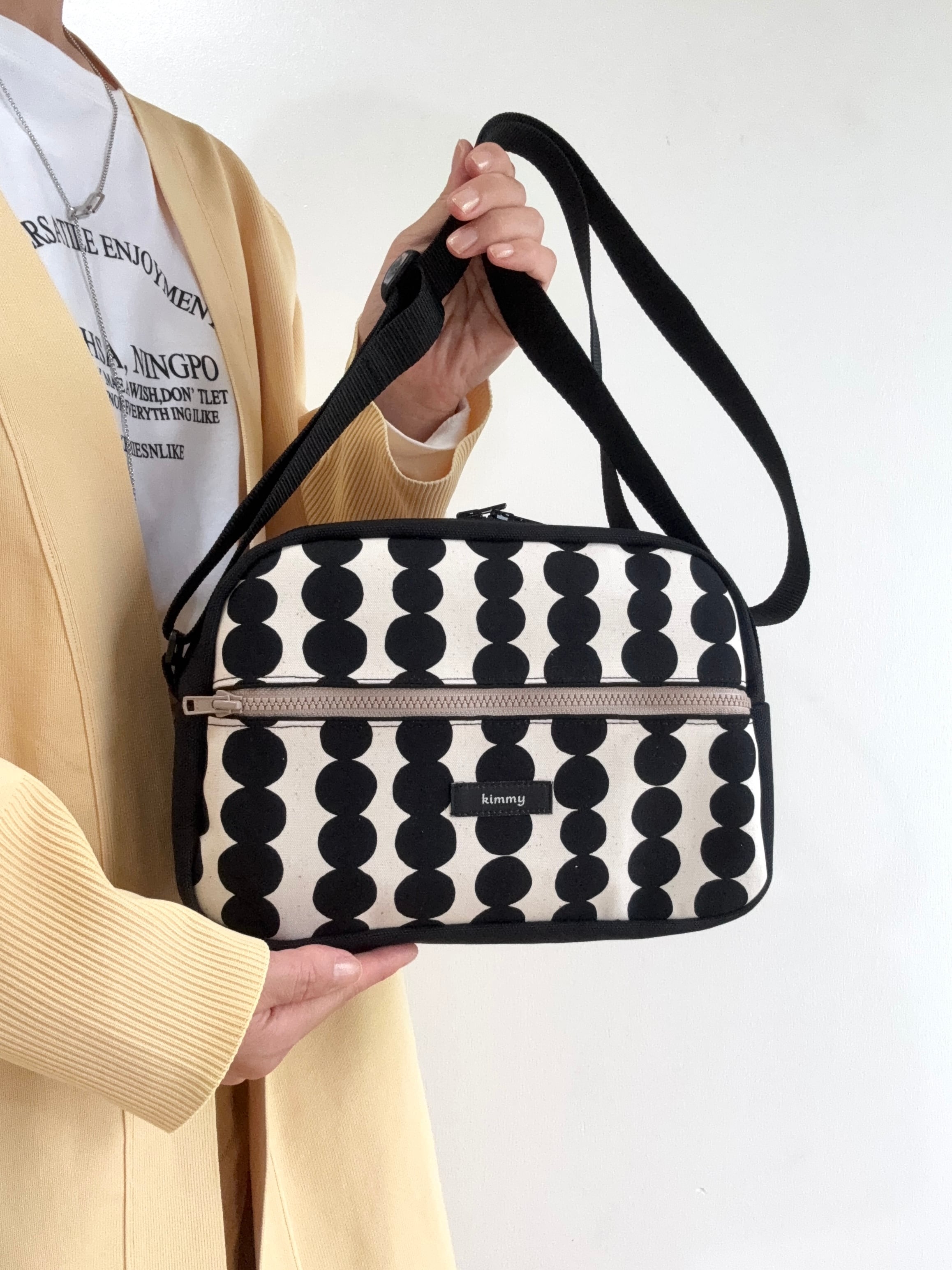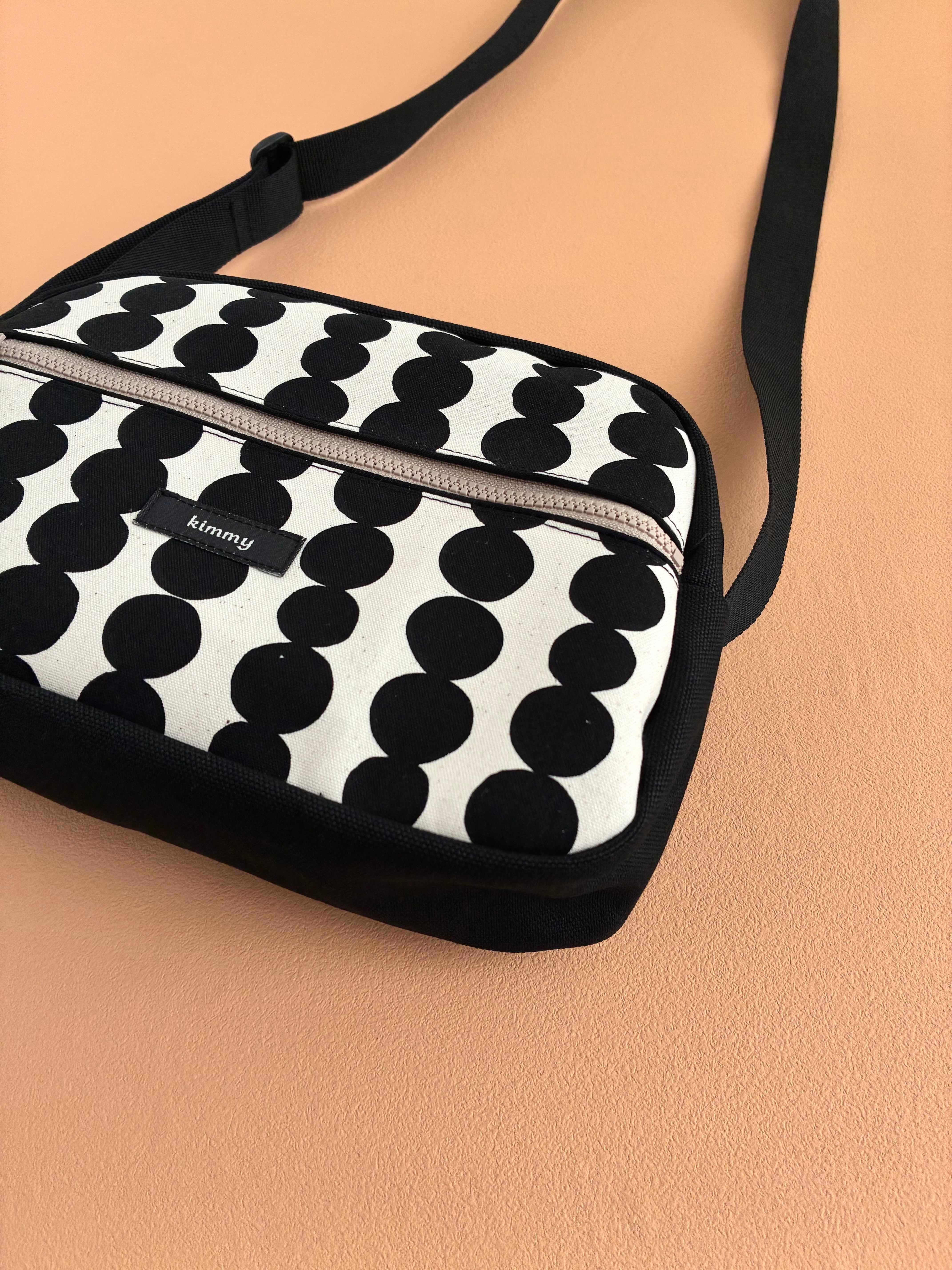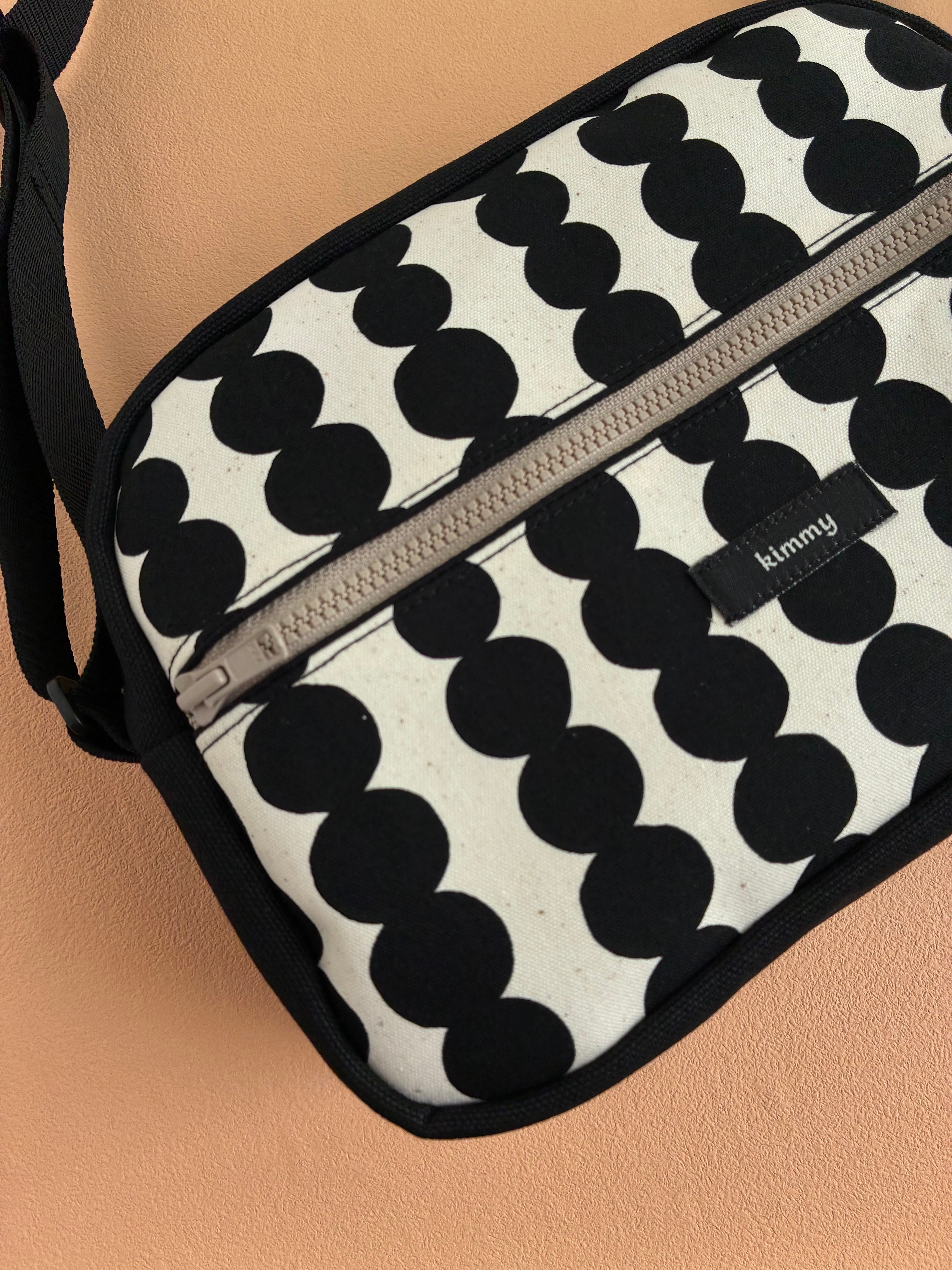 ぽこぽこ水玉デザインとブラックの8号帆布との組み合わせ。