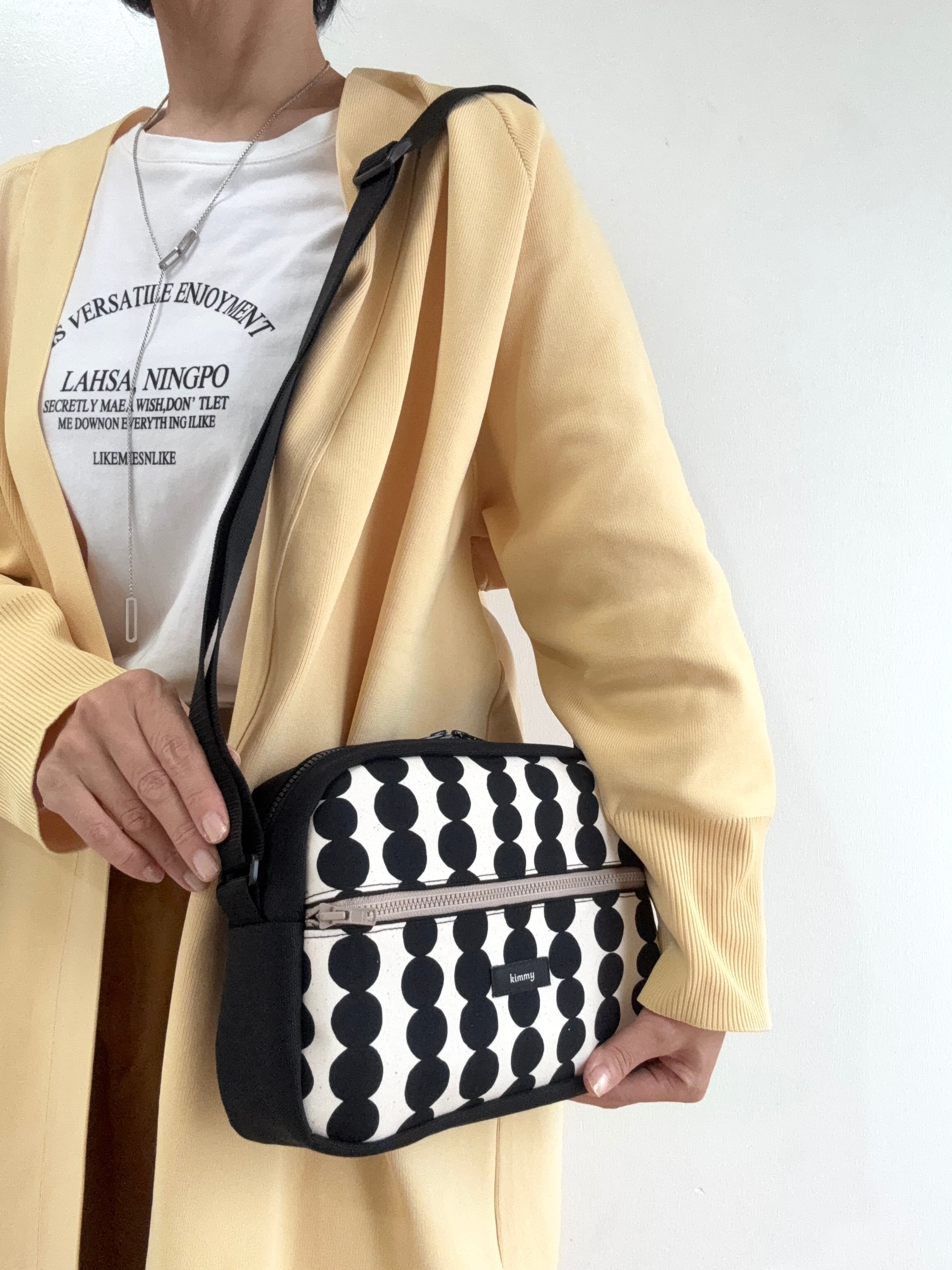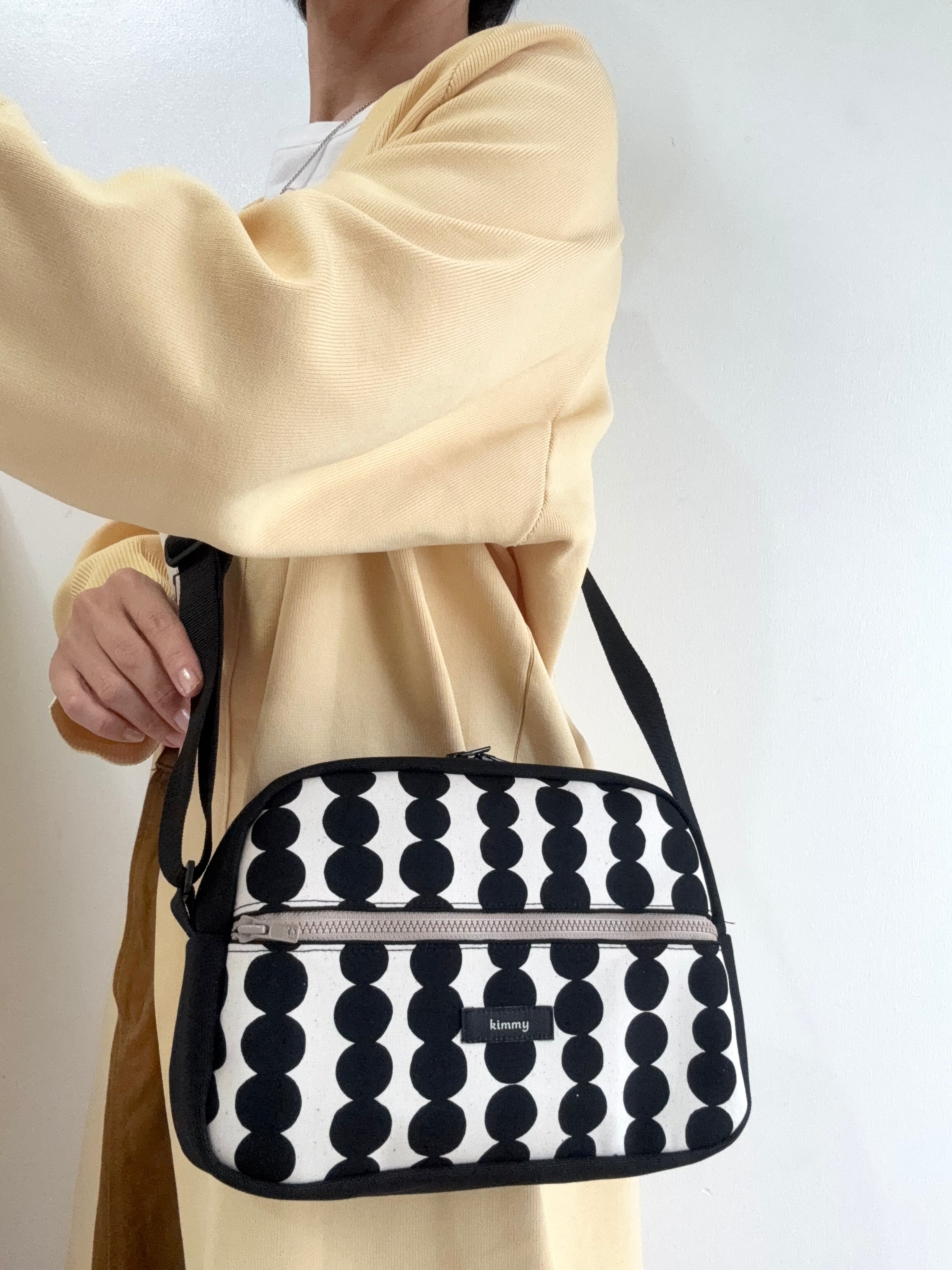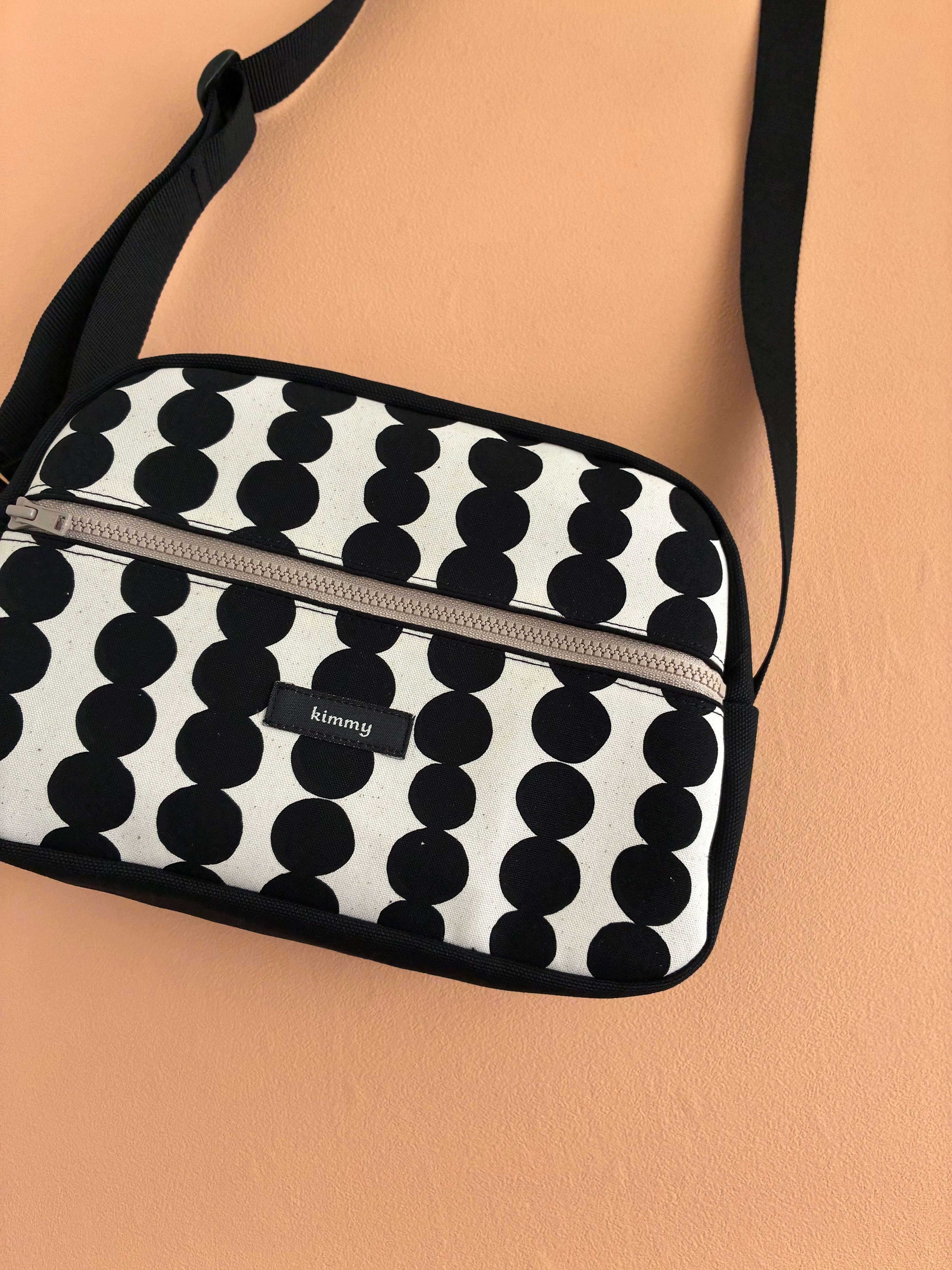ぽこぽこ水玉デザインとブラックの8号帆布との組み合わせ。
