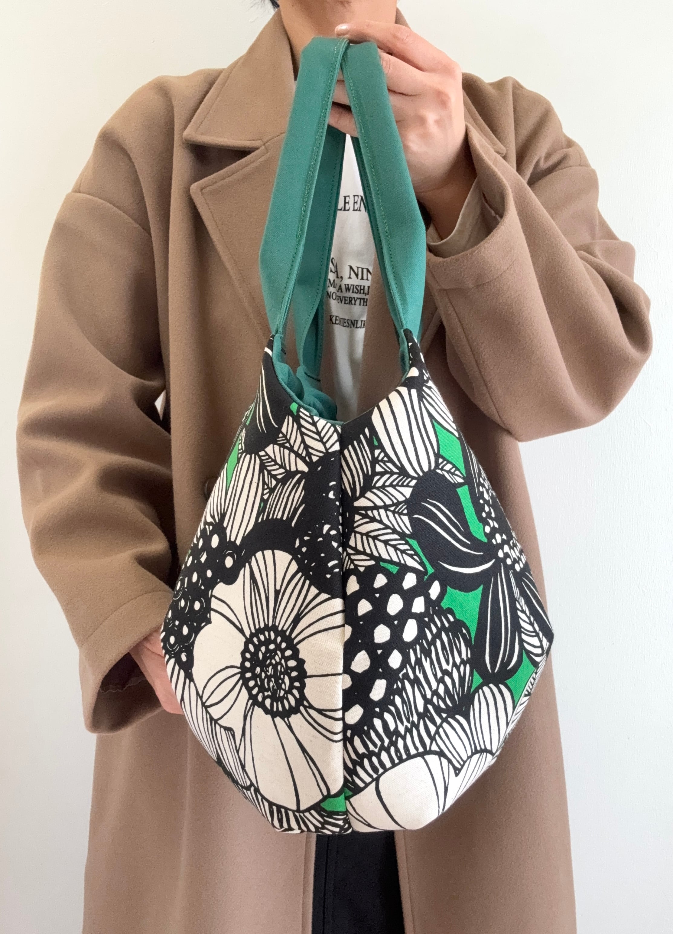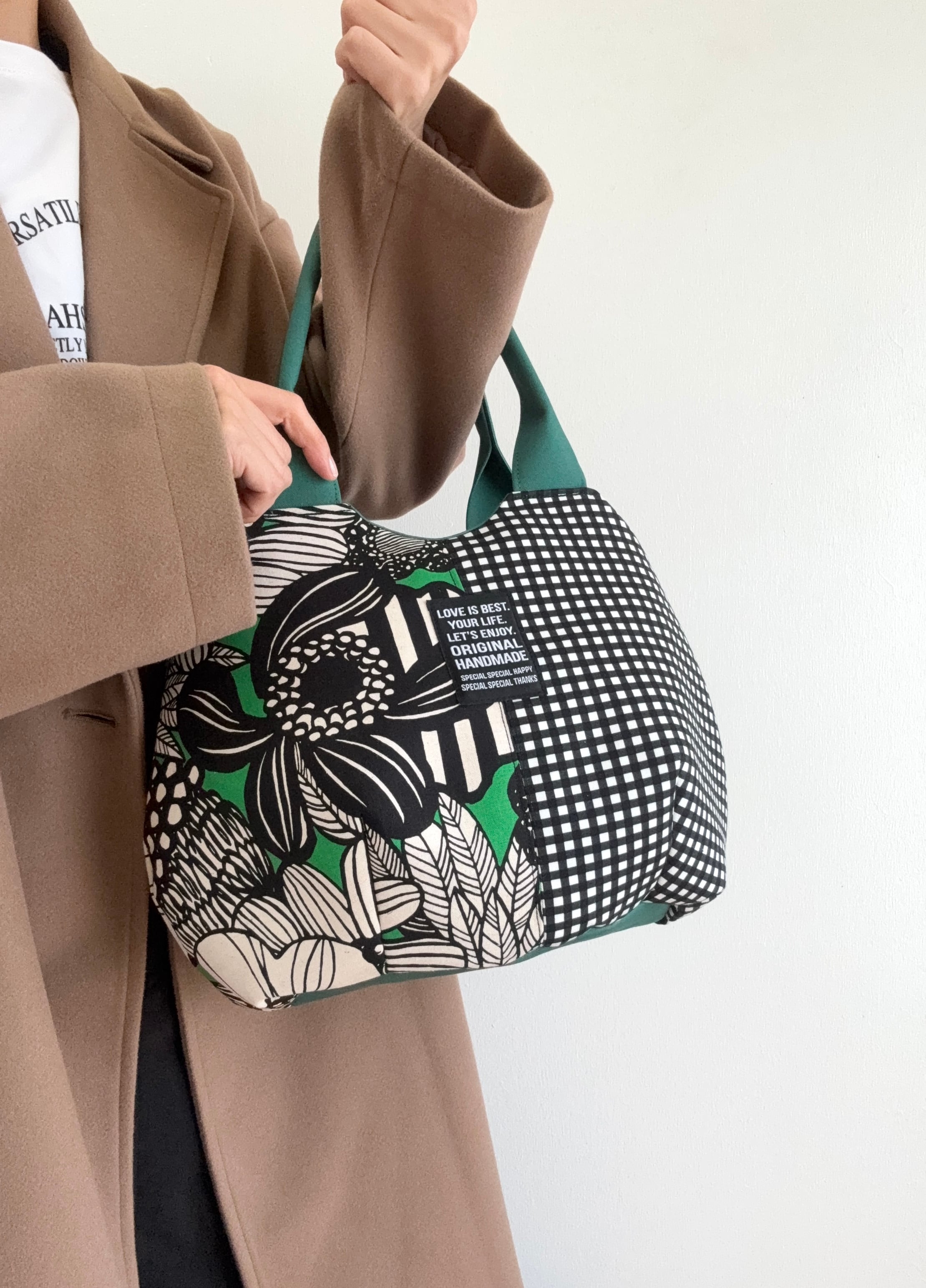 コロンバッグ1.2倍サイズ(グリーンフラワー×チェック)