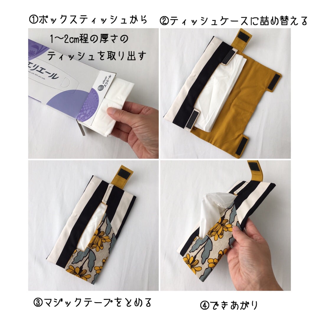 箱ティッシュから詰め替えて、お使いになれるティッシュケースです。