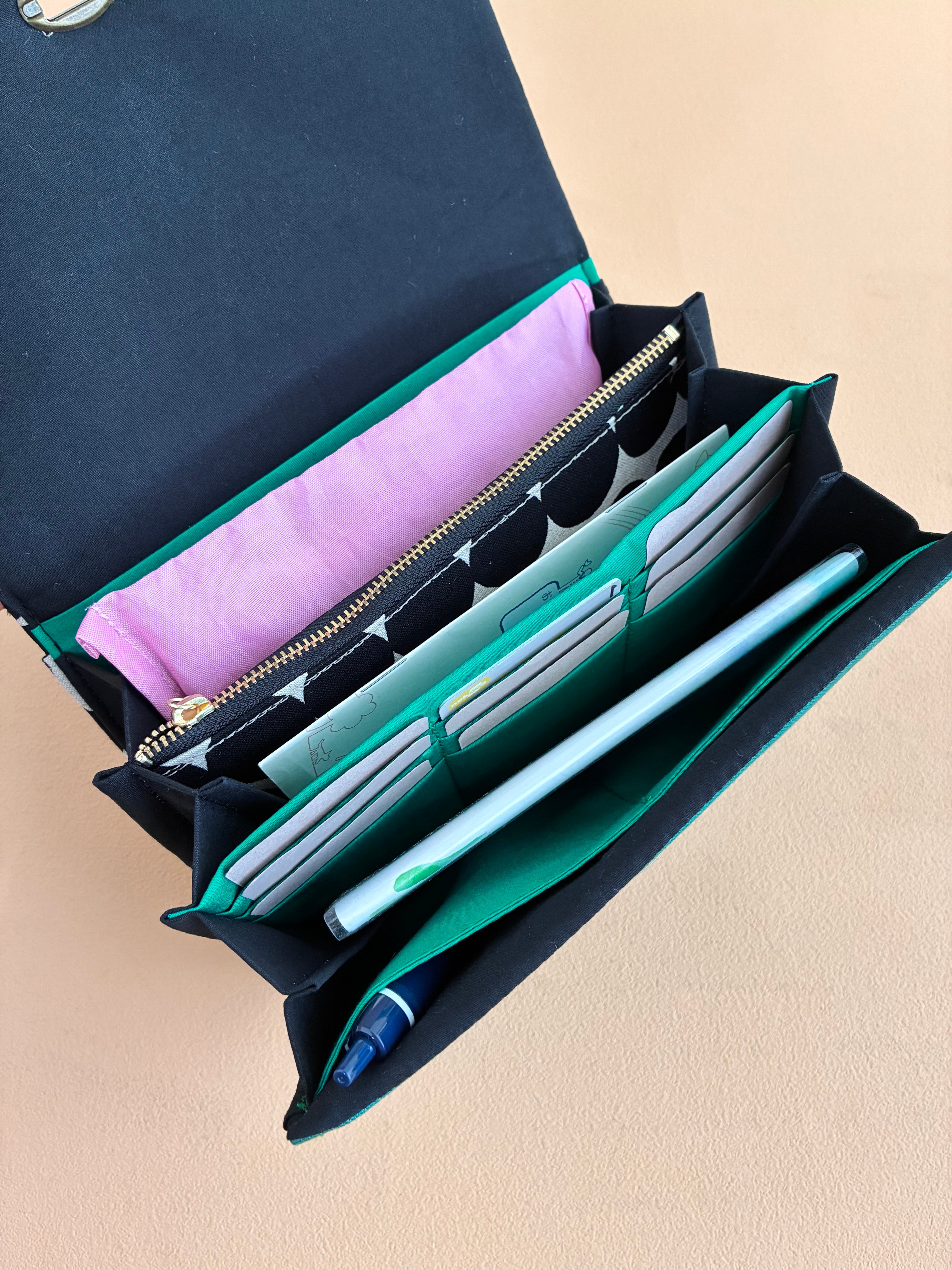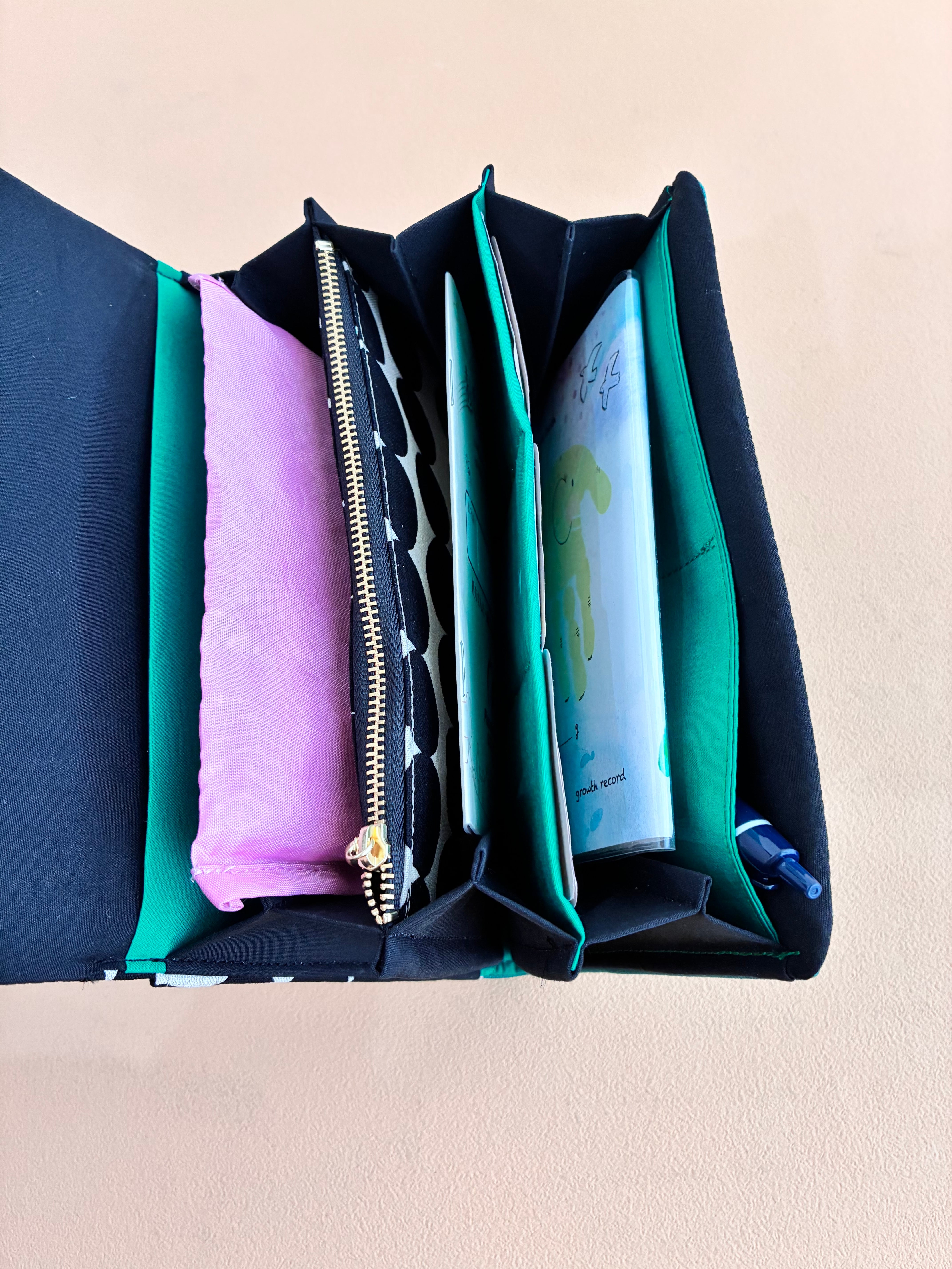 診察券やお薬手帳、領収書などがまるっと入ります。蛇腹タイプで使いやすいです。