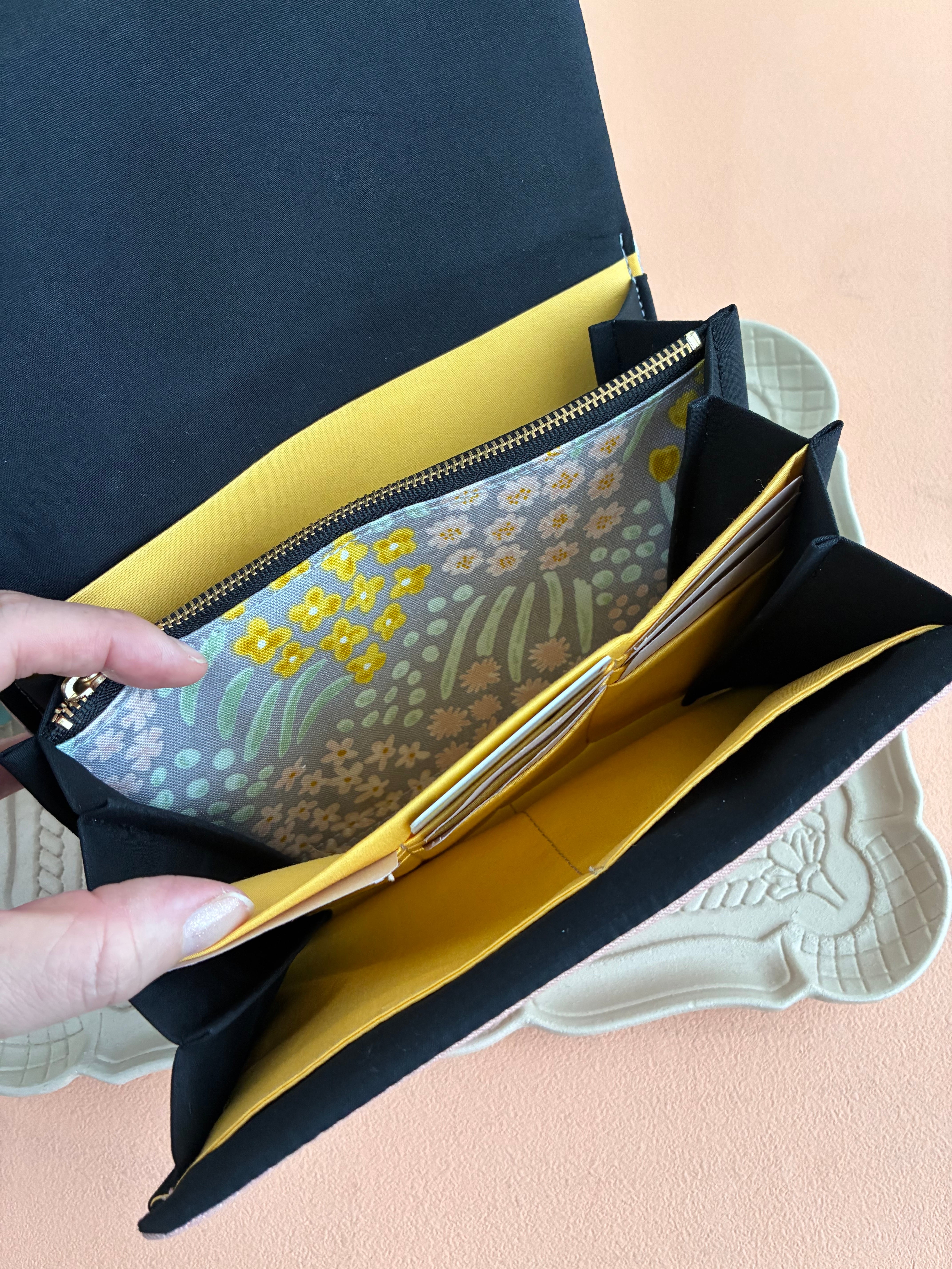 また、表生地と裏生地の間にキルト芯を挟んでいますので、外は張りがあり内側はふっくらしています。※バッグの芯地ほど固くはありません。