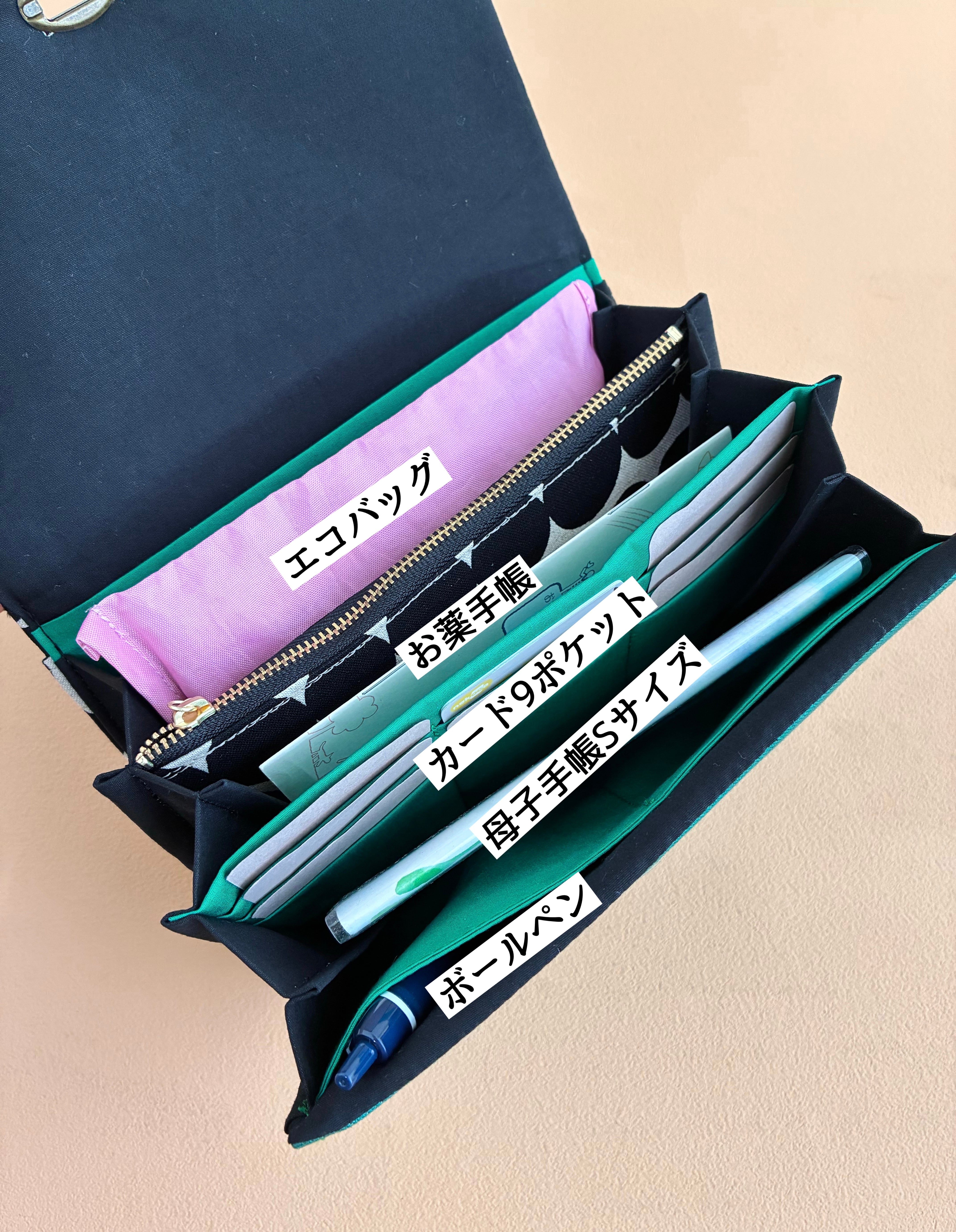 診察券やお薬手帳、領収書などがまるっと入ります。蛇腹タイプで使いやすいです。