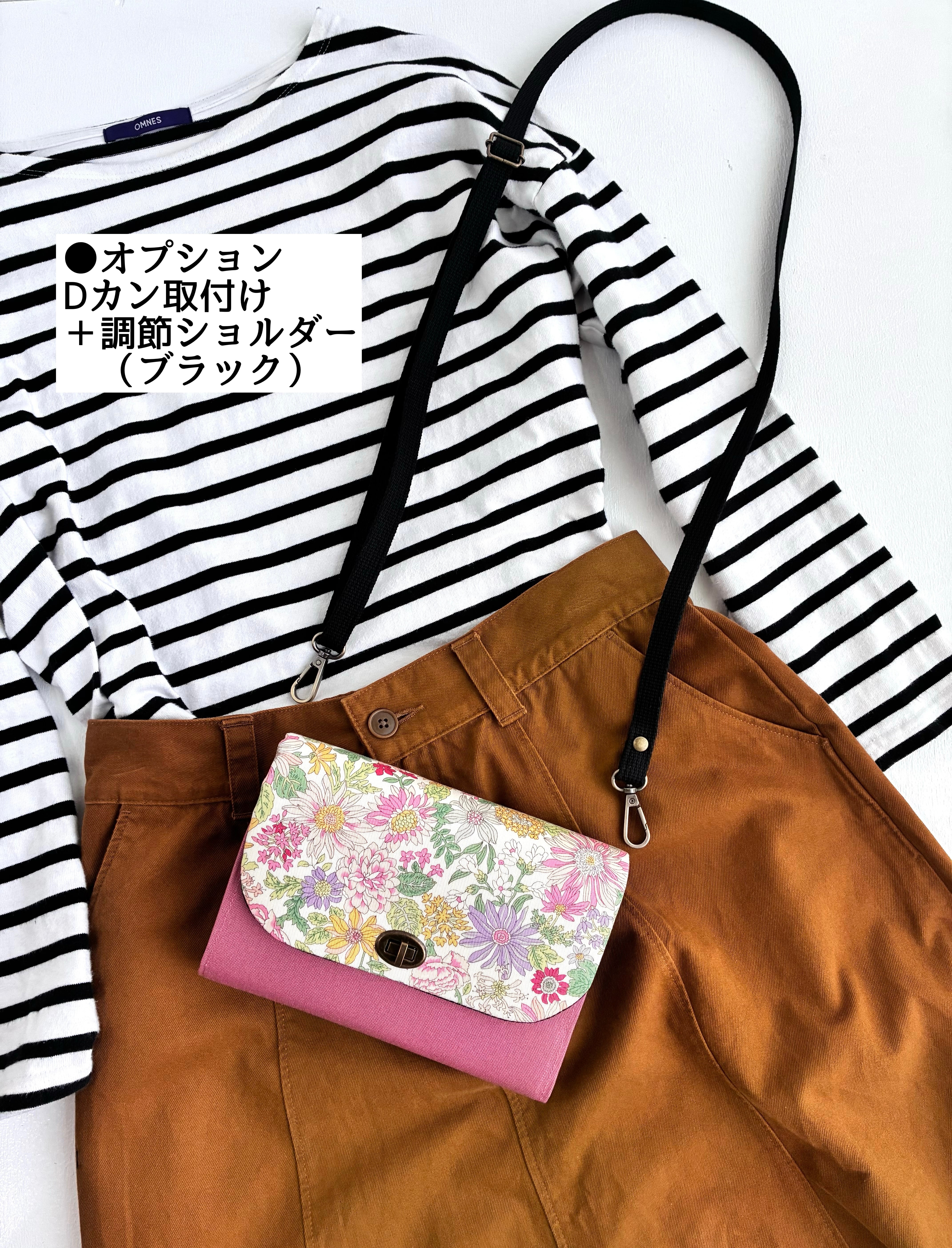 ショルダーヒモをお買い求めくださいましたら、Dカンを取り付けて発送いたします。