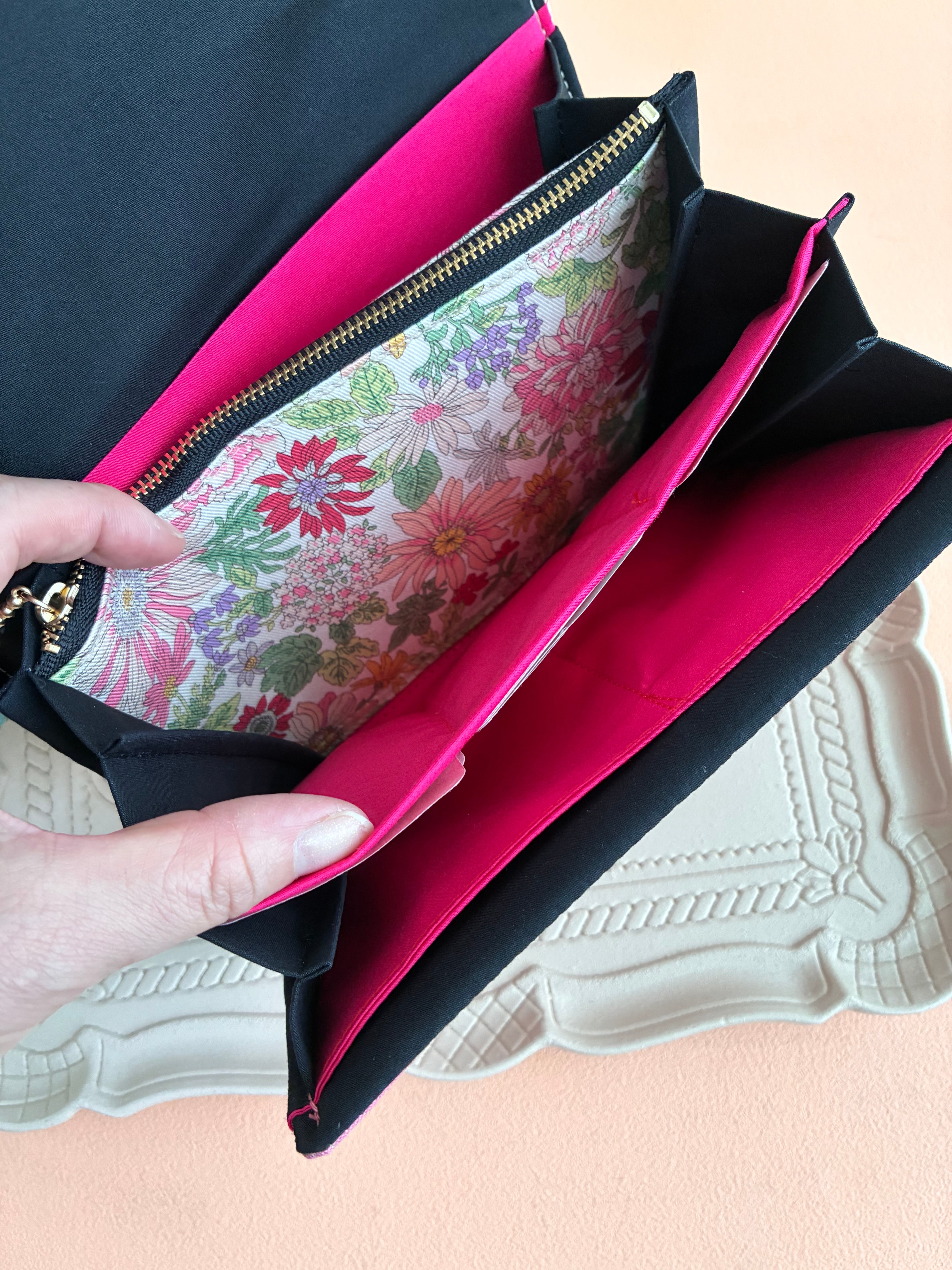 また、表生地と裏生地の間にキルト芯を挟んでいますので、外は張りがあり内側はふっくらしています。※バッグの芯地ほど固くはありません。