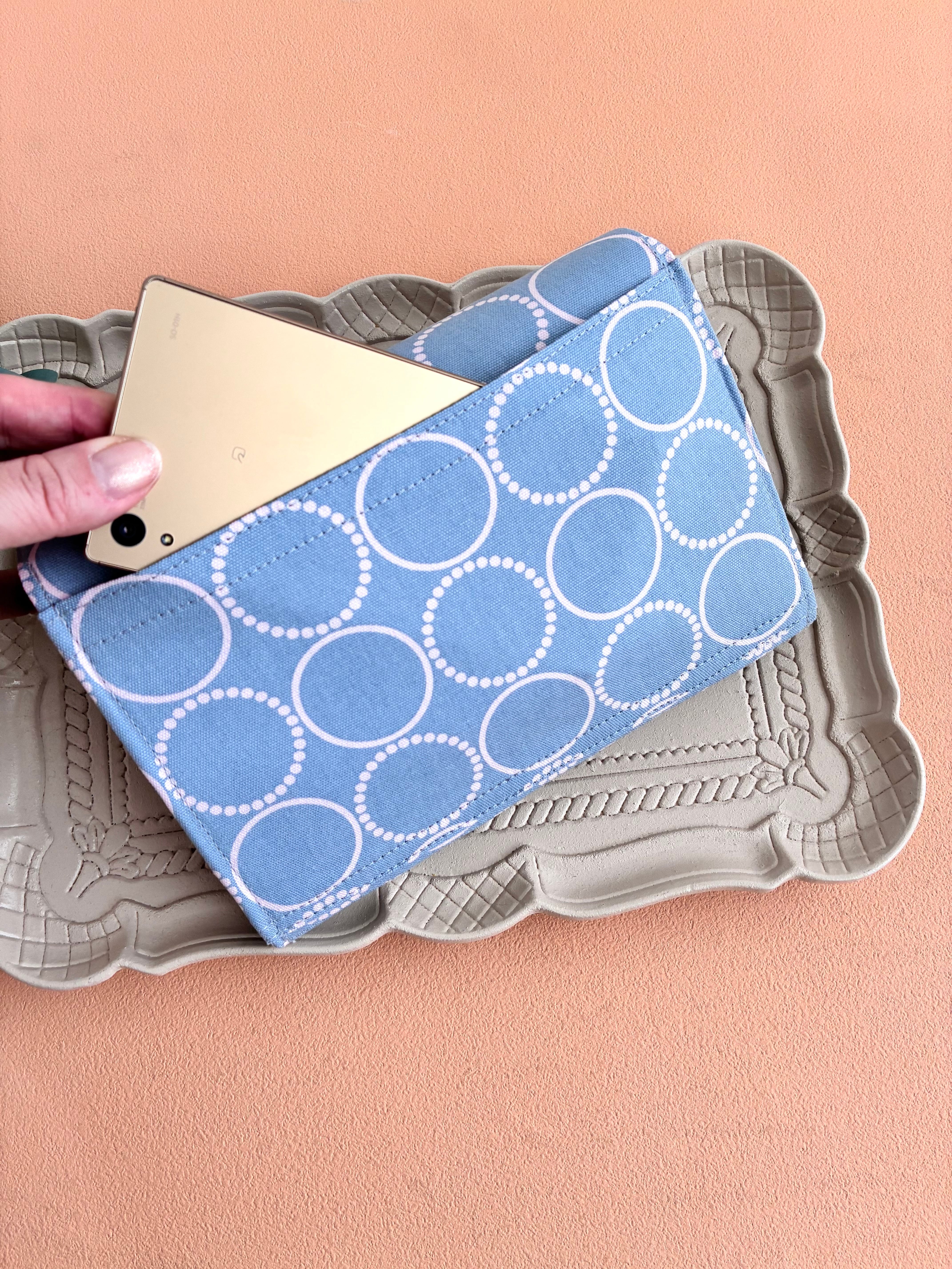 ※ご購入時にご注意ください。実物の色を写真で撮るのが難しく、鮮やかな水玉に見えますが、実物は水色に少しグレーが入った色味になります。(くすみがかった色味)