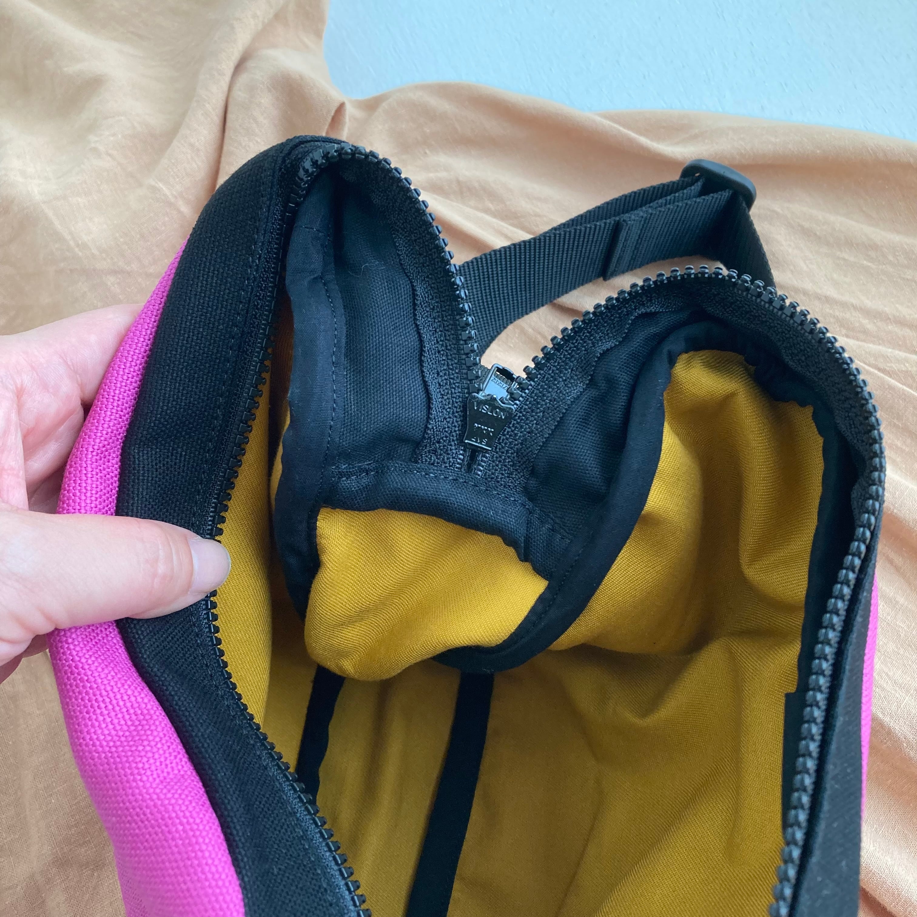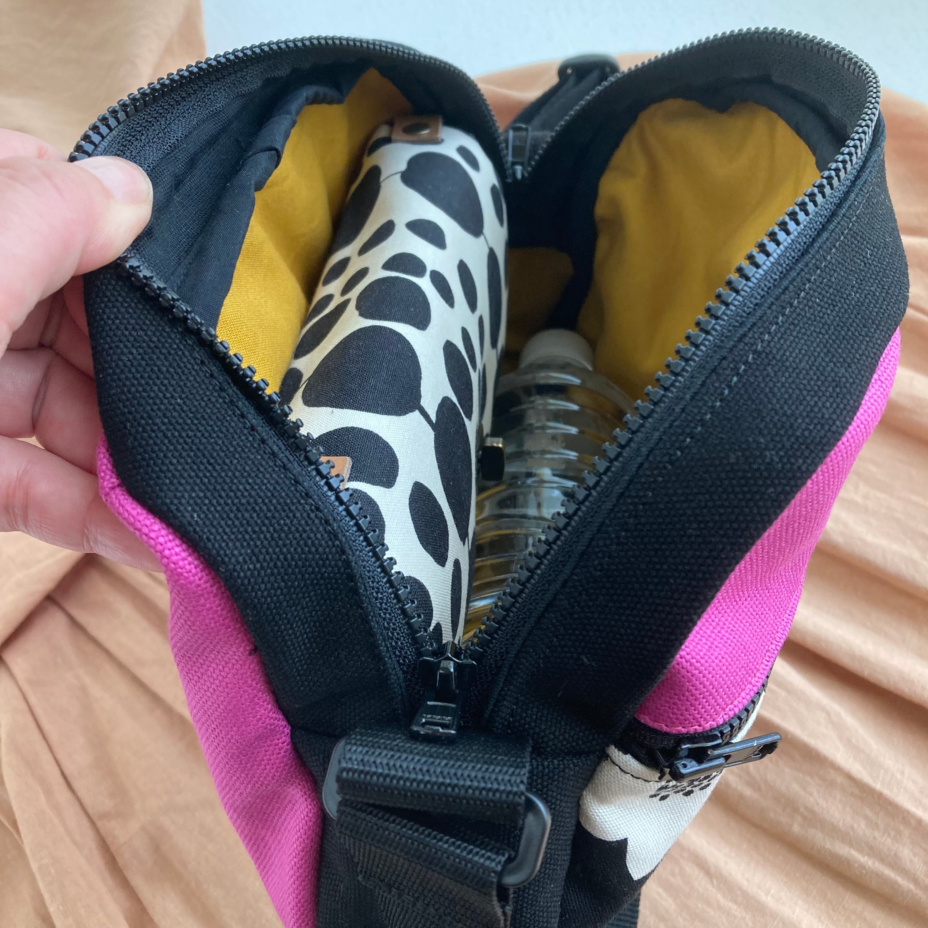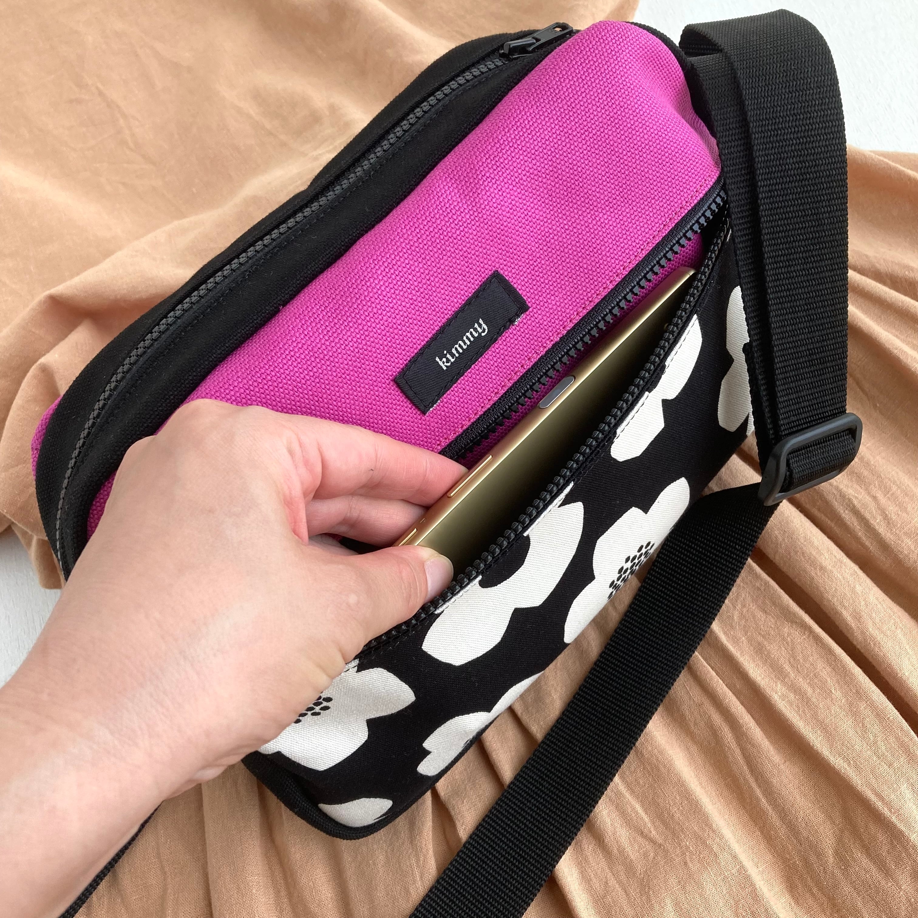 前ポケットには、スマホがさっと入るので出し入れできます。