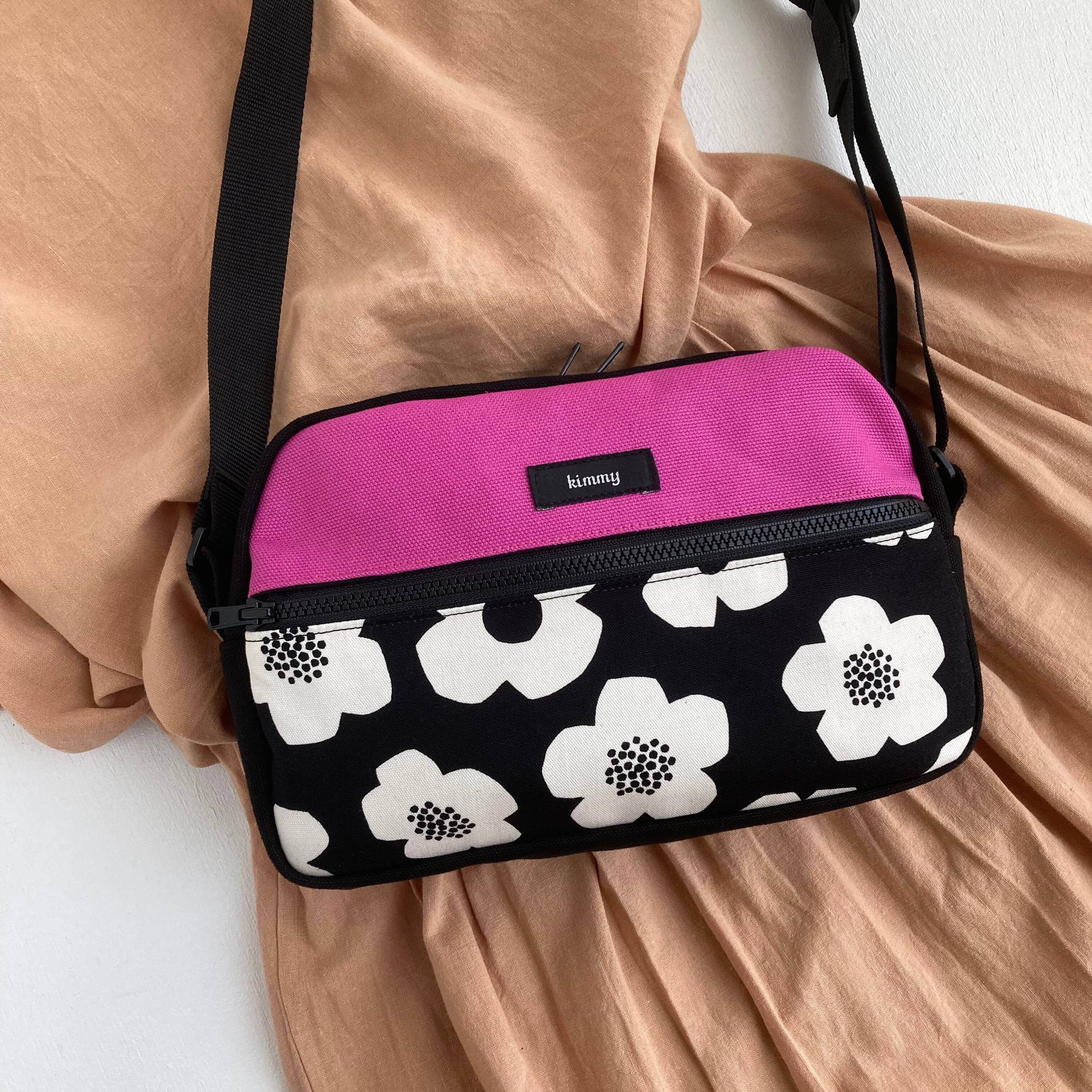 モダンフラワーデザインとパープルピンク8号帆布との組み合わせ。