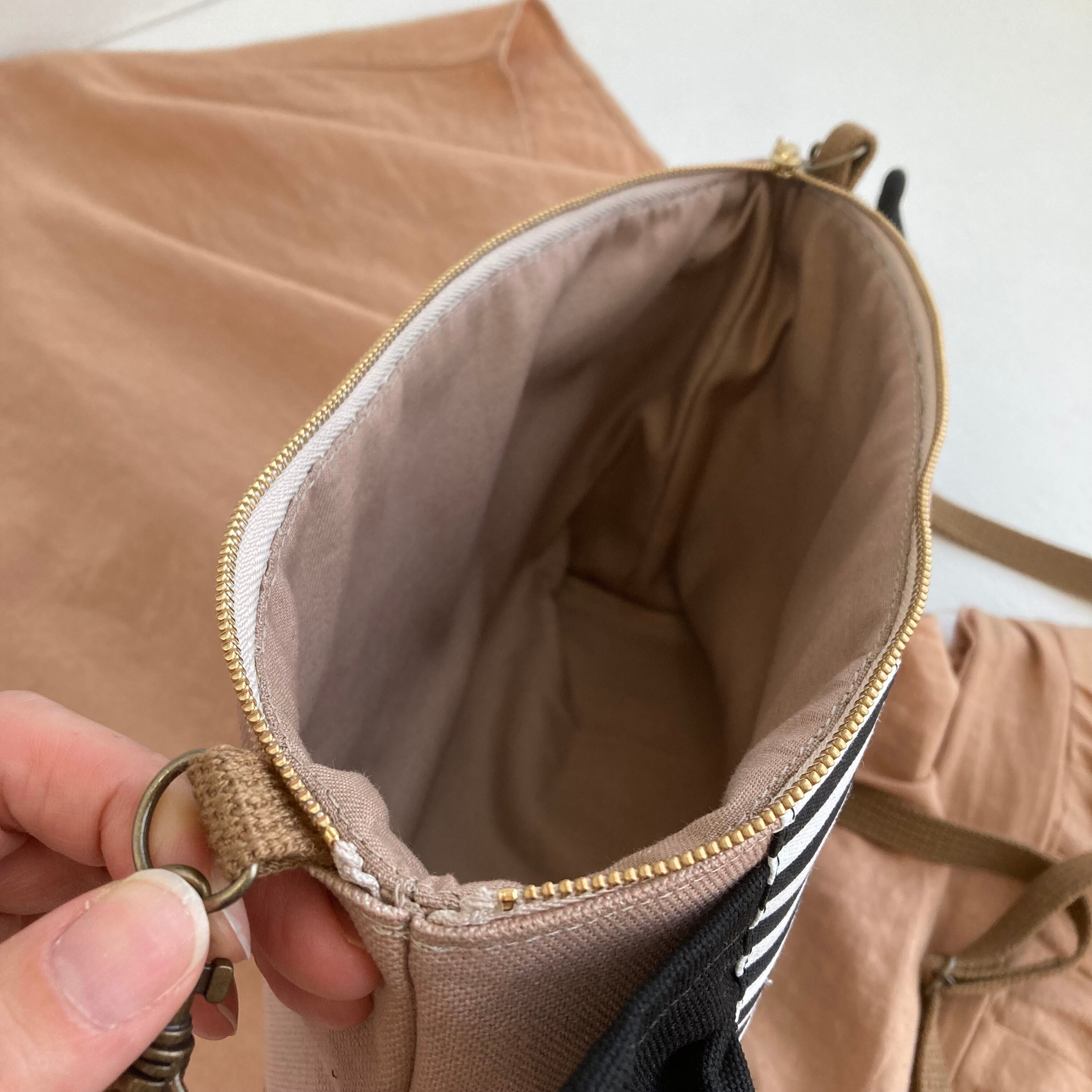 ショルダーヒモは長さが調整可能(140~80㎝)のアクリル製タイプを使用。アクリル製ですが、見た目や触り心地はコットンに近いです。