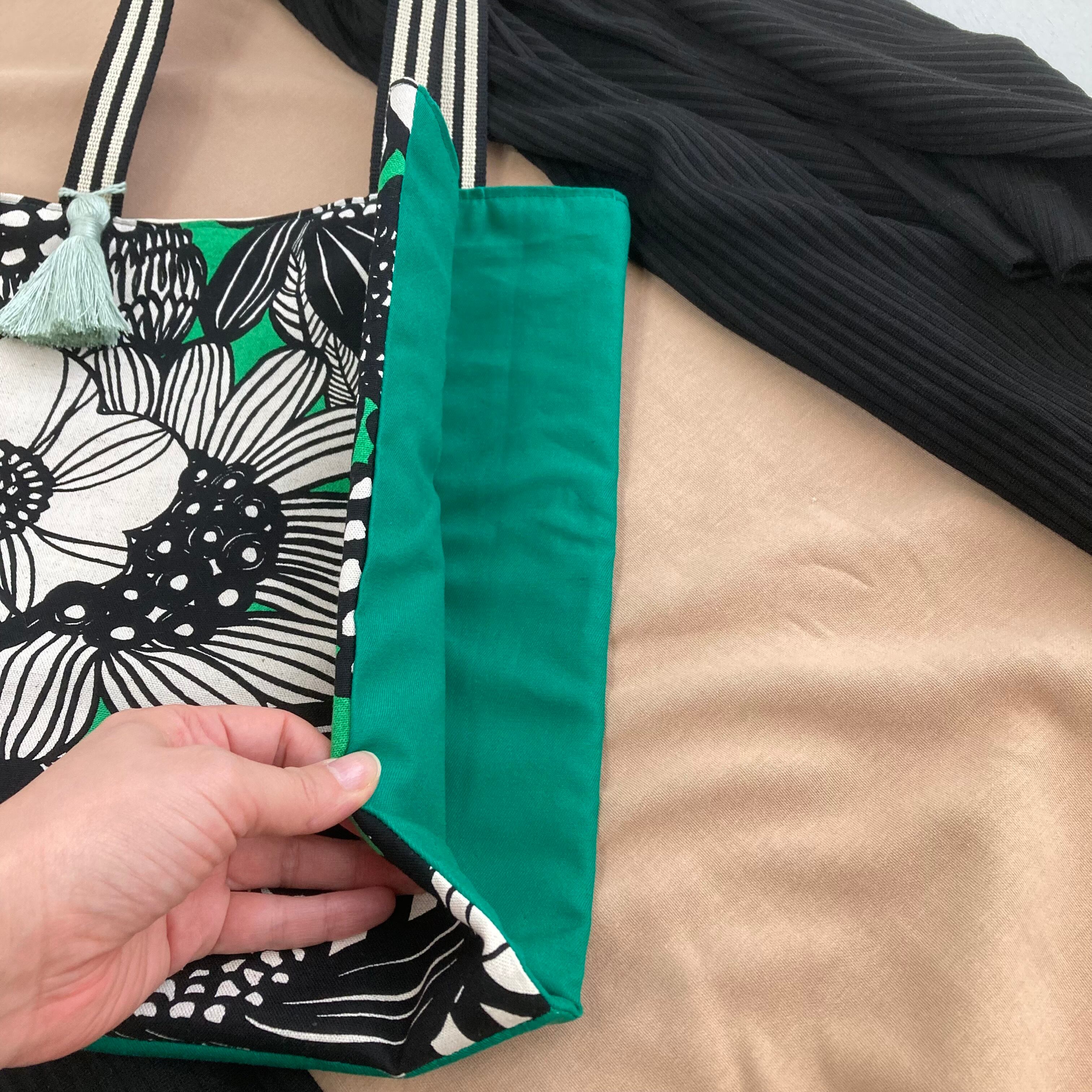 再販5回目・見て見て!バッグの中が3つにわかれているよ(グリーンフラワー)