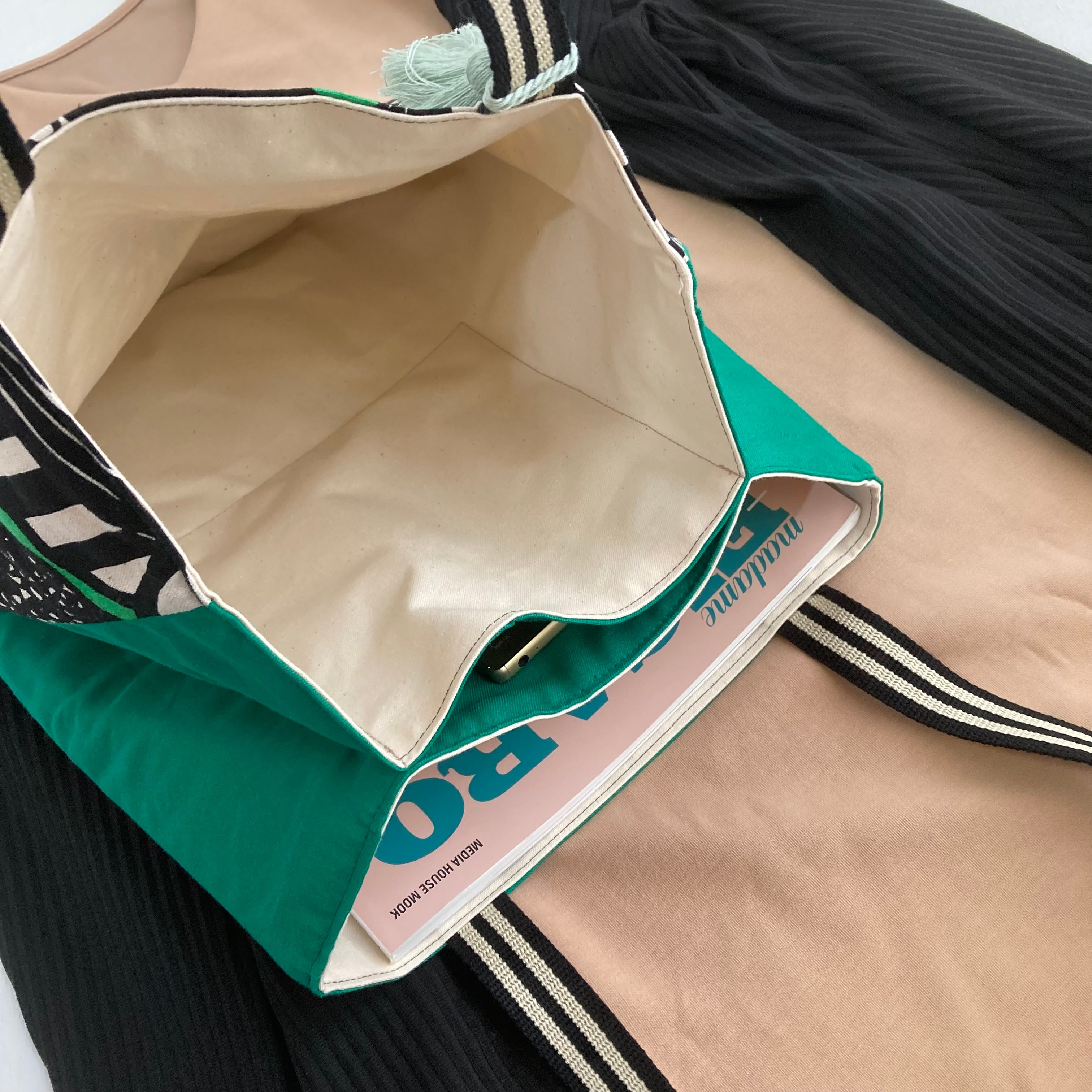 バッグの中が3つにわかるているトートバッグです。