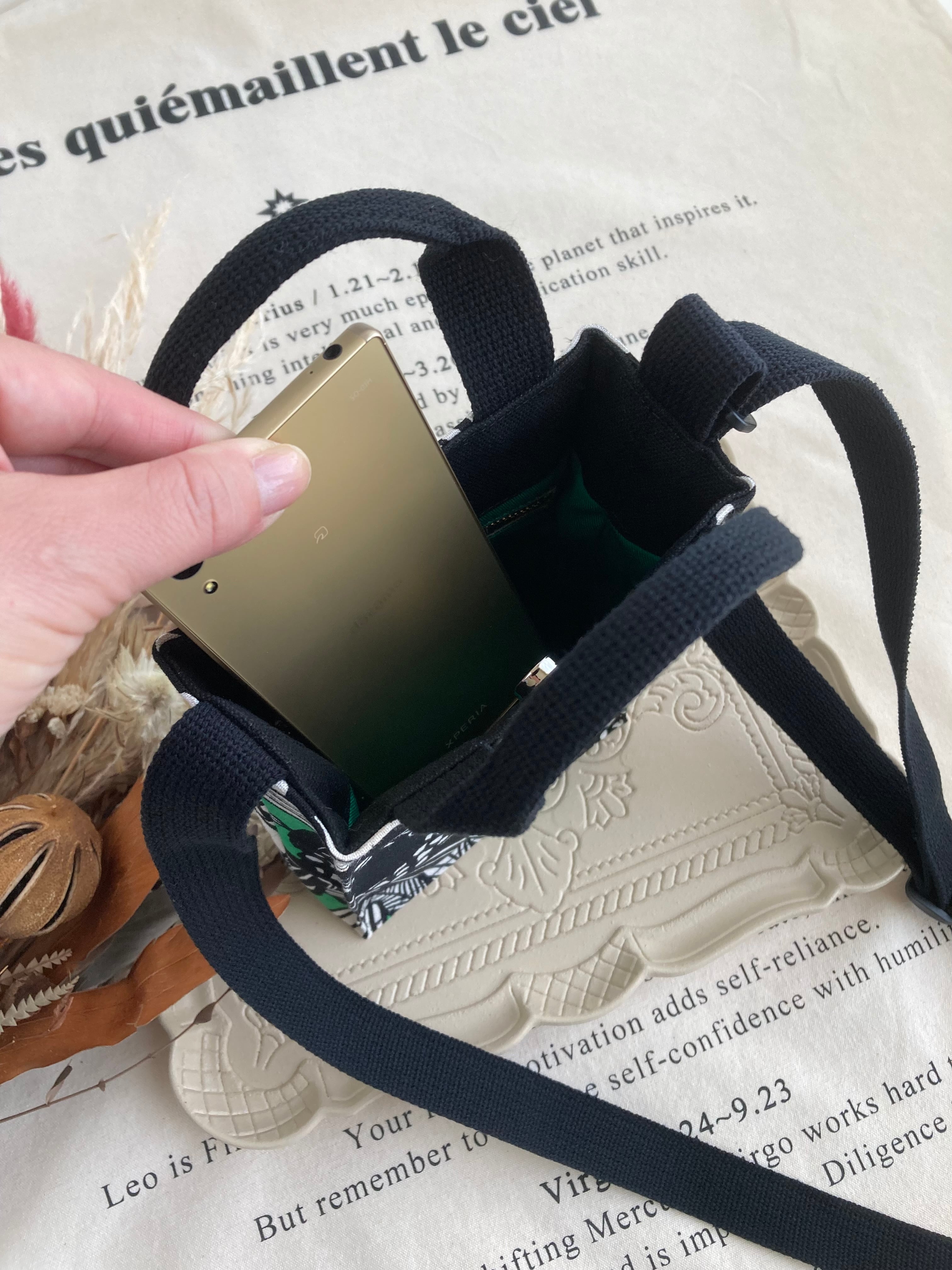 再販2回目・スクエアスマホショルダー(グリーンフラワー)