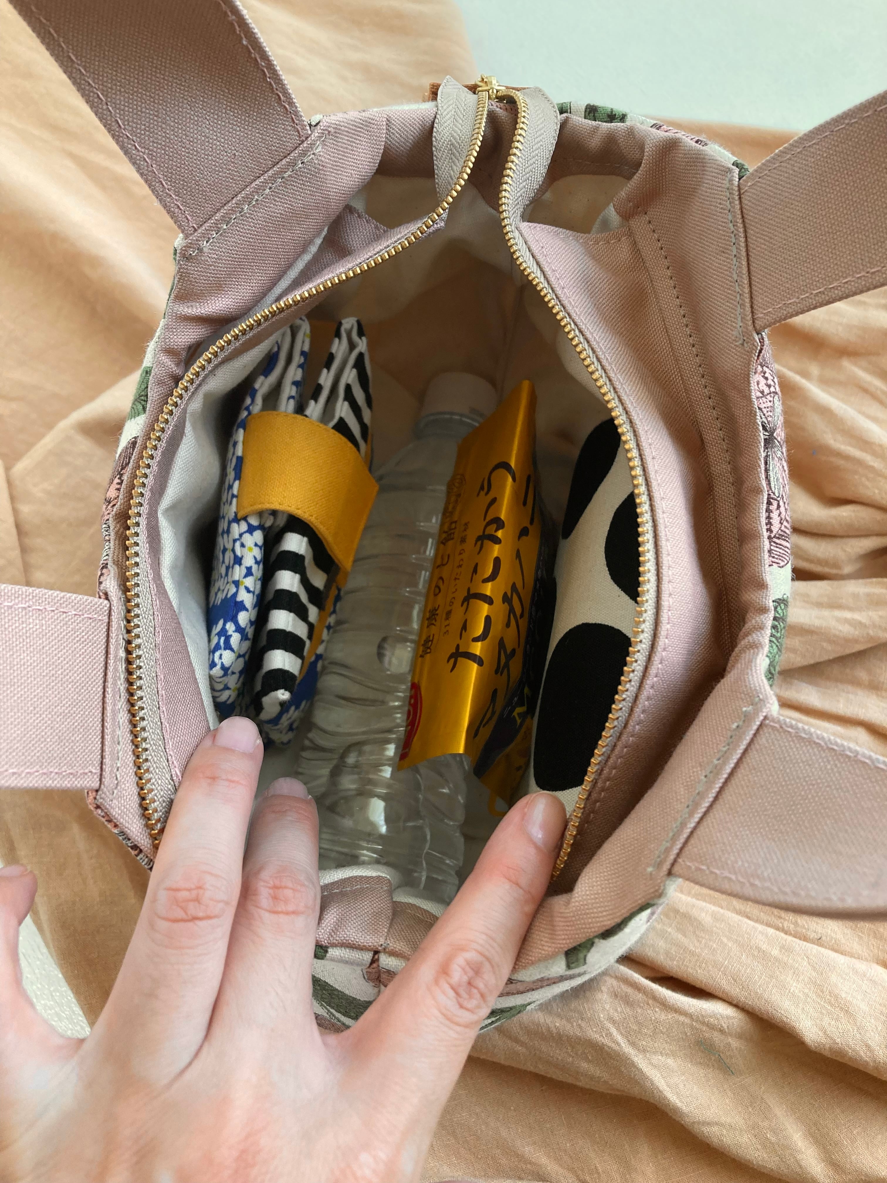 ▶︎スマホがスポッと入るポケットをつけたので、ファスナー開閉せずに、