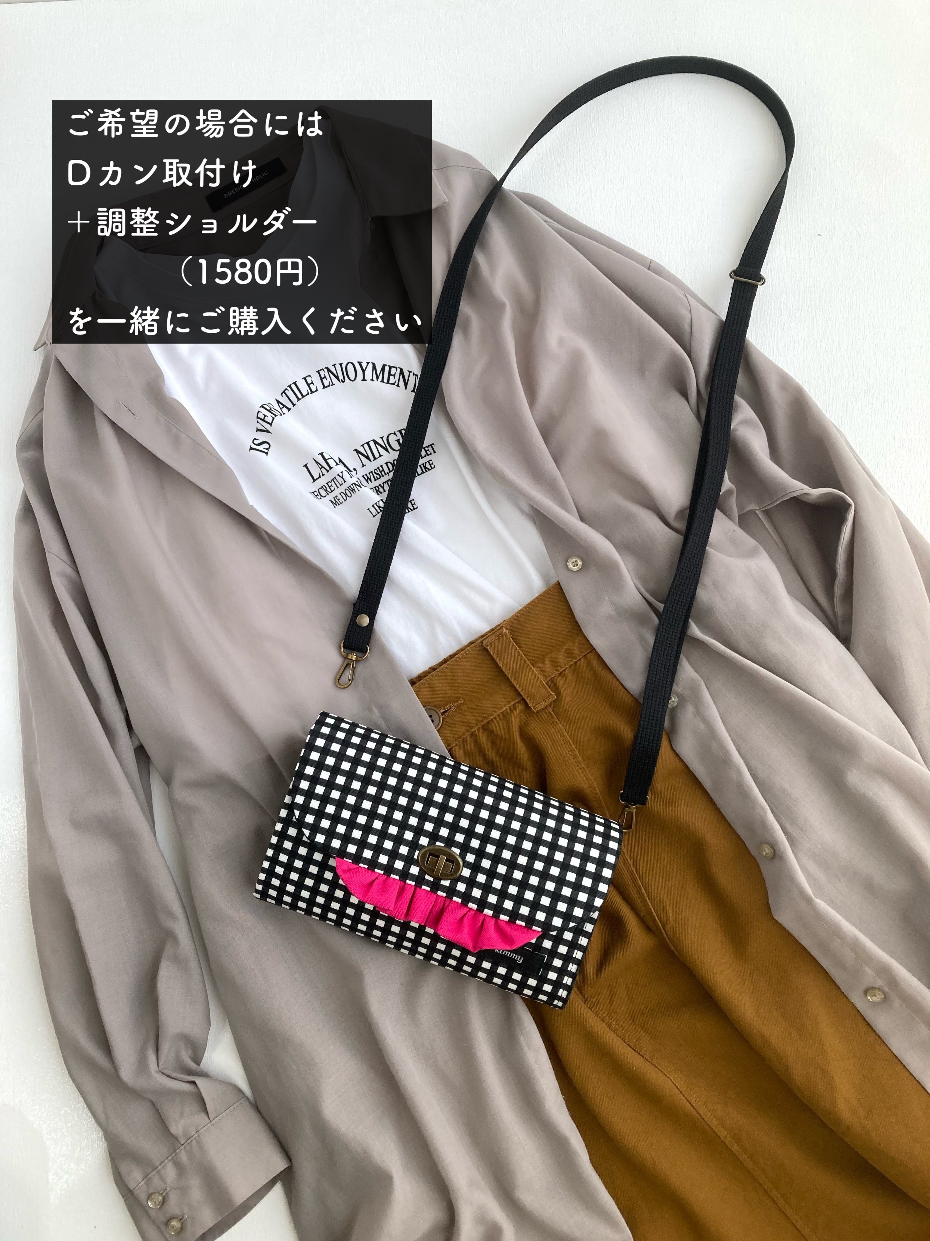 ●オプションにて、お財布ショルダーにできます。ご希望の際はオプションのショルダーヒモも一緒にお買い求めください。